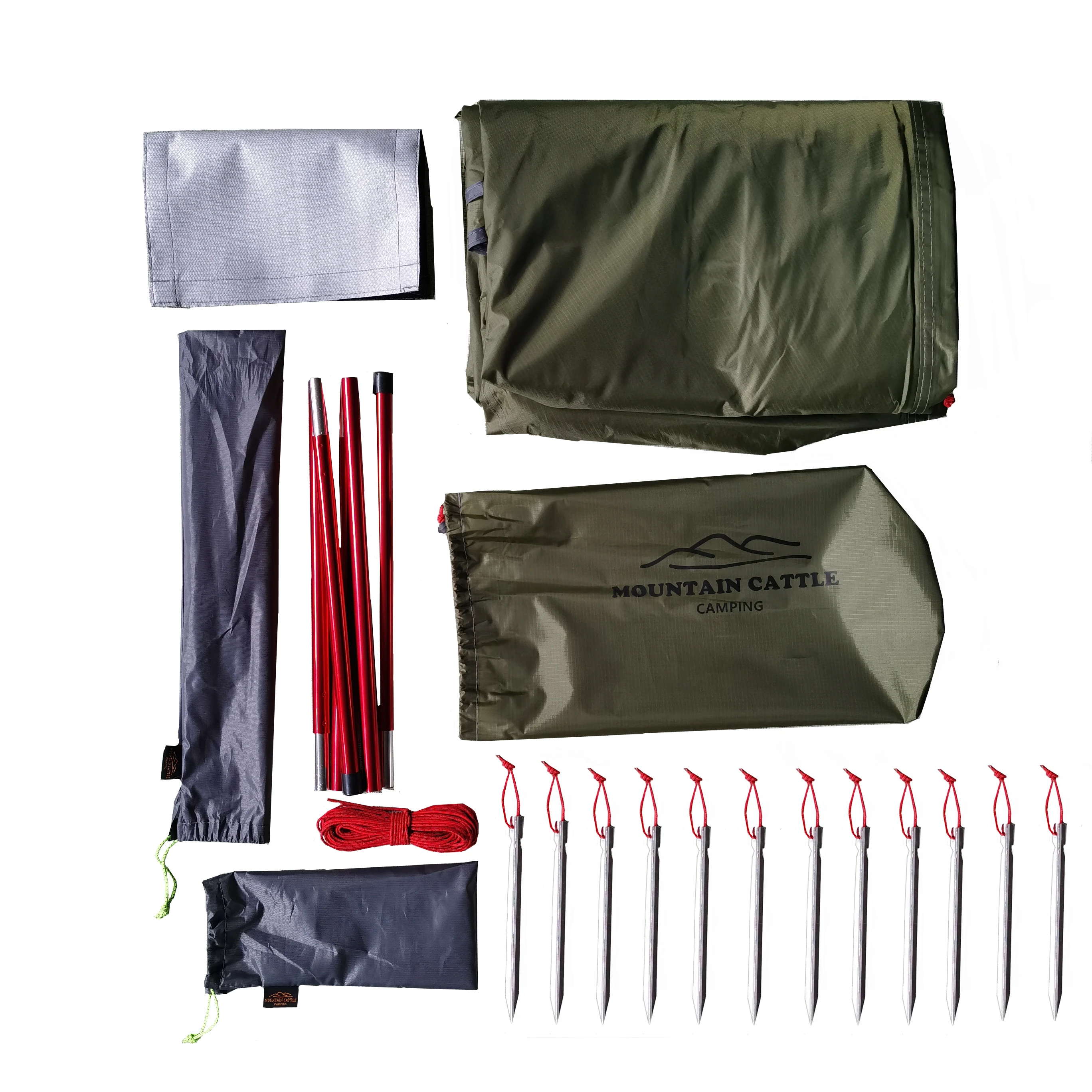 Палатка брезент для x1 Алюминиевый полюс x1 Канаты x 4 Алюминиевые колышки x 12 Пожаробезопасная ткань-1 шт. Сумка, сумка-рюкзак x1