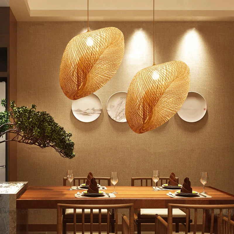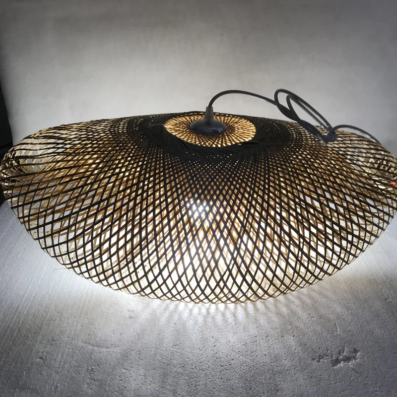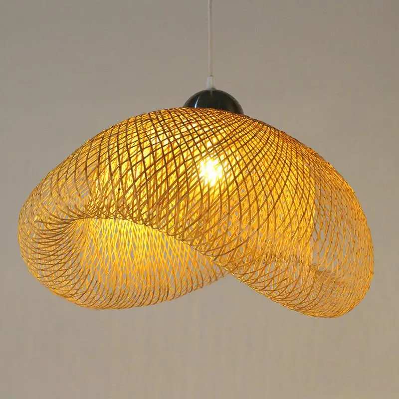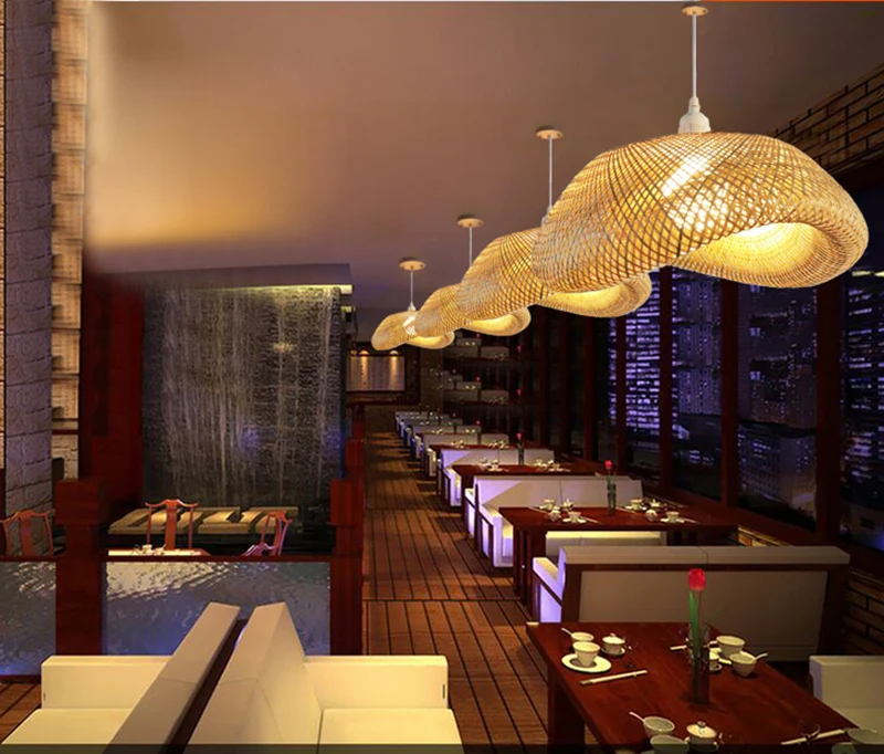 Бамбуковая лампа ручной работы, плетеный ротанговый волнистый подвесной светильник, винтажный Японский подвесной светильник, домашняя столовая комната