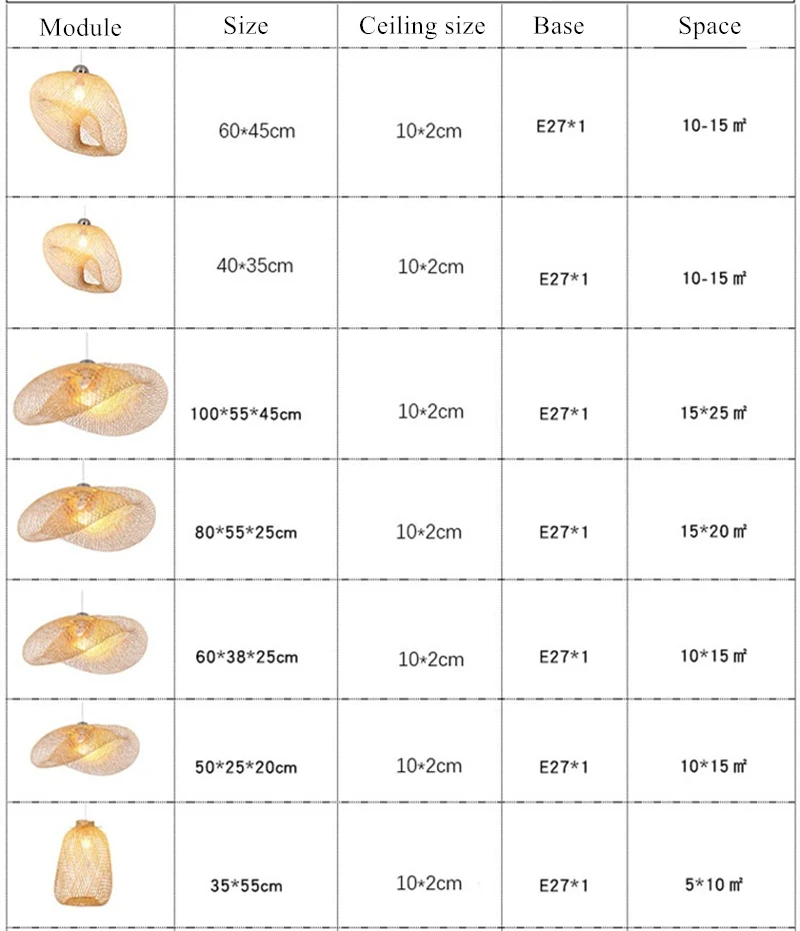 Особенности: 100% Новый бренд Материал: бамбук 2 стиля в наличии: как на картинке Источник: светодиодный светильник/энергосберегающая лампа/лампа накаливания Сертификация: CCC,ROHS,CE Применение: столовая/бюстгальтер/спальня/гостиная/клуб Площадь освещения: 10-15 квадратных метров Тип цоколя: E27 Напряжение: AC110-240v Источник питания: AC ? Длина провода: 100 см Посылка: 1 комплект E27 подвесной светильник Примечание: 1. Почти все лампы поставляются без ламп светильник источника Светильник лампы в качестве подарка для вас, если это-Подарочная лампа транспортных повреждений, мы не сможем компенсировать, пожалуйста, отнеситесь с пониманием! Примечание: 1. Почти все лампы поставляются без ламп светильник источника Светильник лампы в качестве подарка для вас, если это-Подарочная лампа транспортных повреждений, мы не сможем компенсировать, пожалуйста, отнеситесь с пониманием!