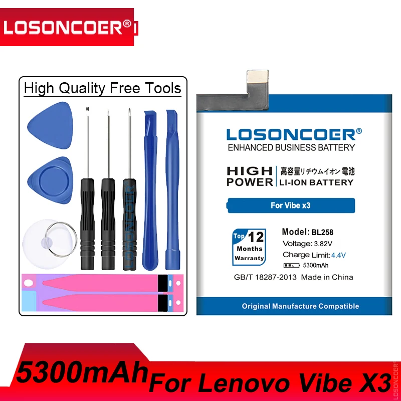 Аккумулятор BL258 на 5300 мА ч для Lenovo Vibe X3, аккумулятор X3c50 X3c70 X3a40, перезаряжаемый литий-ионный, встроенный в телефон, литий-полимерный