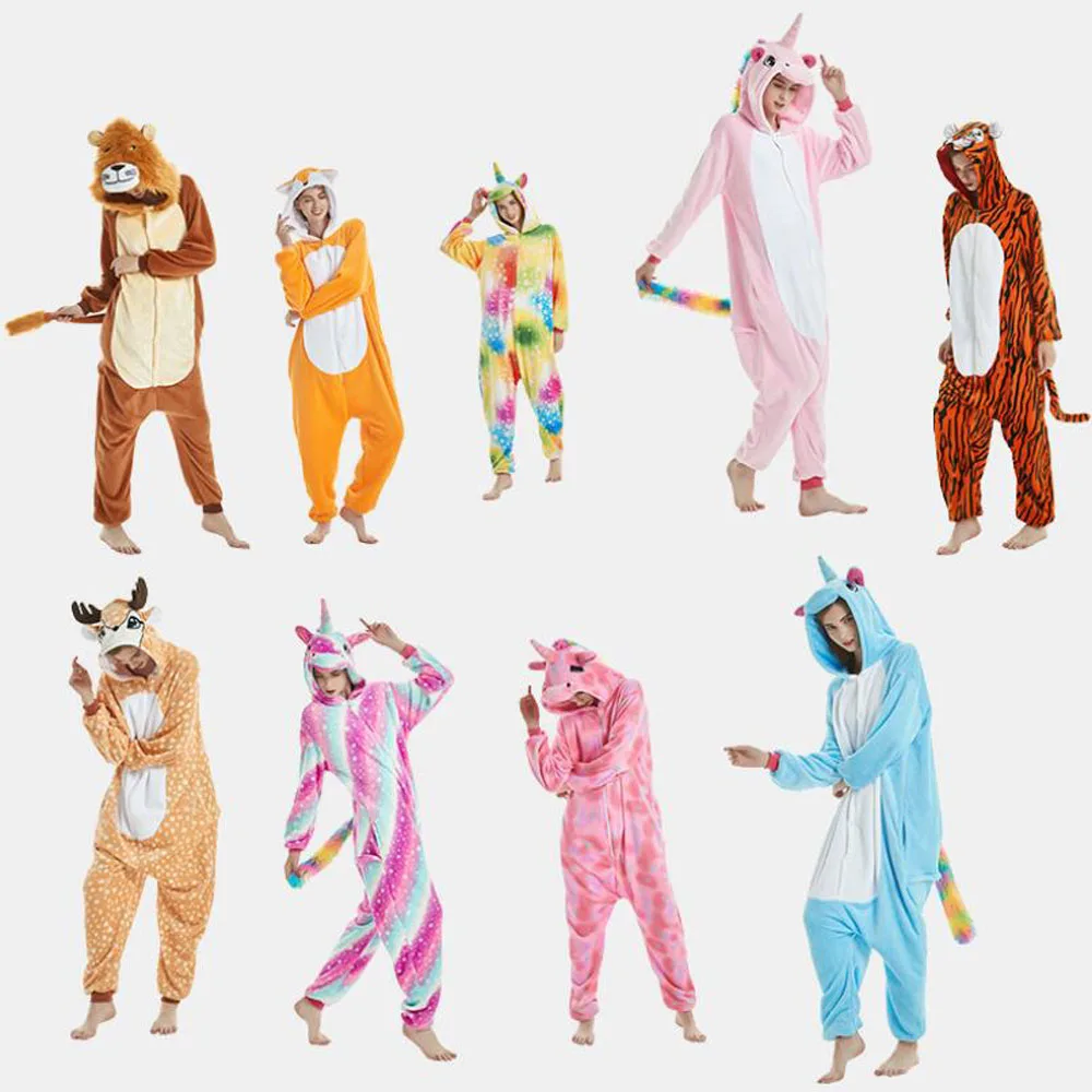 2020 пижамы в виде животных для взрослых, одежда для сна в виде мультяшного единорога, пижамные комплекты, кигуруми в виде единорога, женские и мужские теплые фланелевые комбинезоны с капюшоном