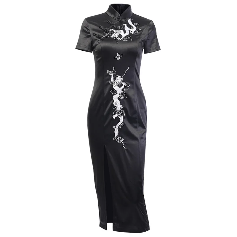 Женское готическое традиционное платье-Ципао с вышивкой дракона, эл...