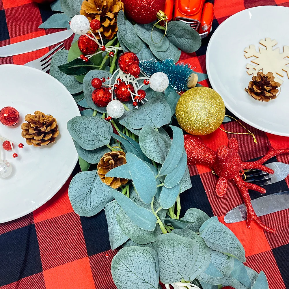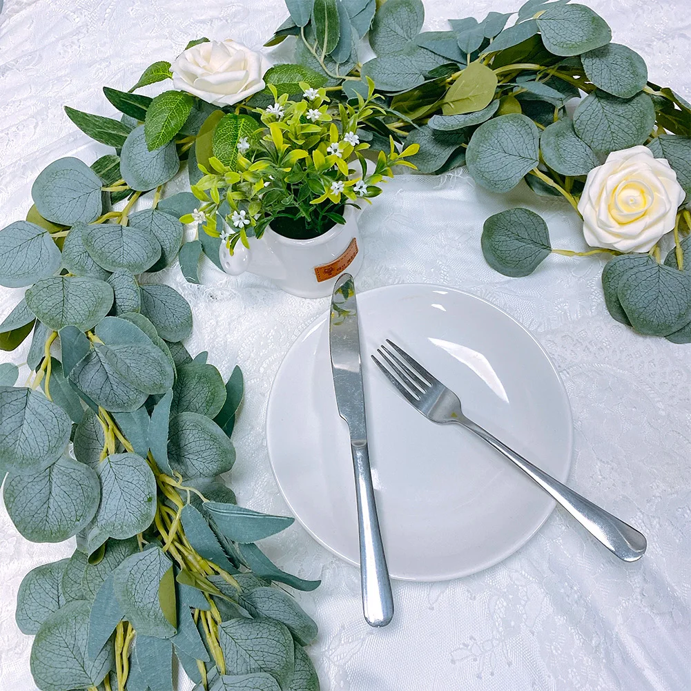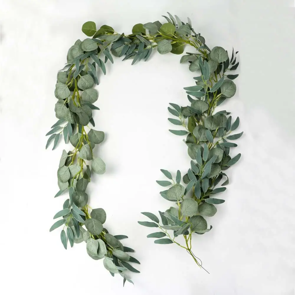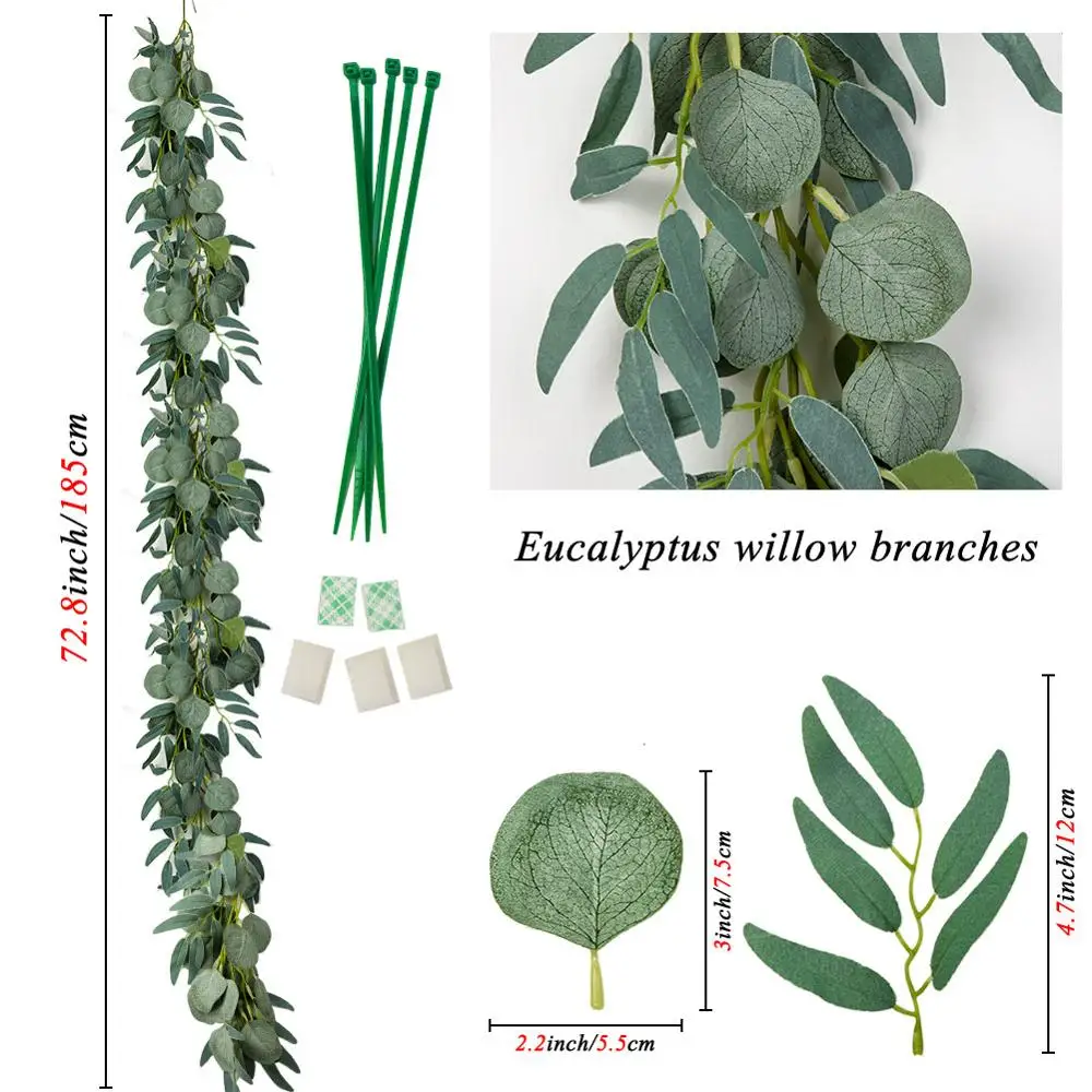 Наша искусственная гирлянда из эвкалипта сделана из прочного шелка для листьев и пластика для стеблей, Нетоксичная, устойчивая к ультрафиолетовому излучению, водонепроницаемая, многоразовая, не теряет и не выцветает, выглядит свежо навсегда без обслуживания