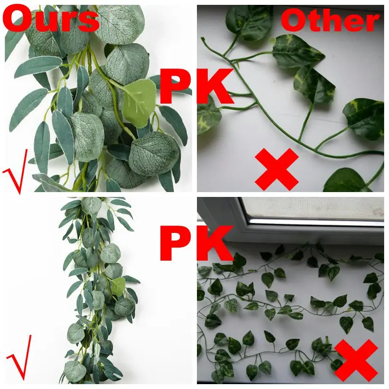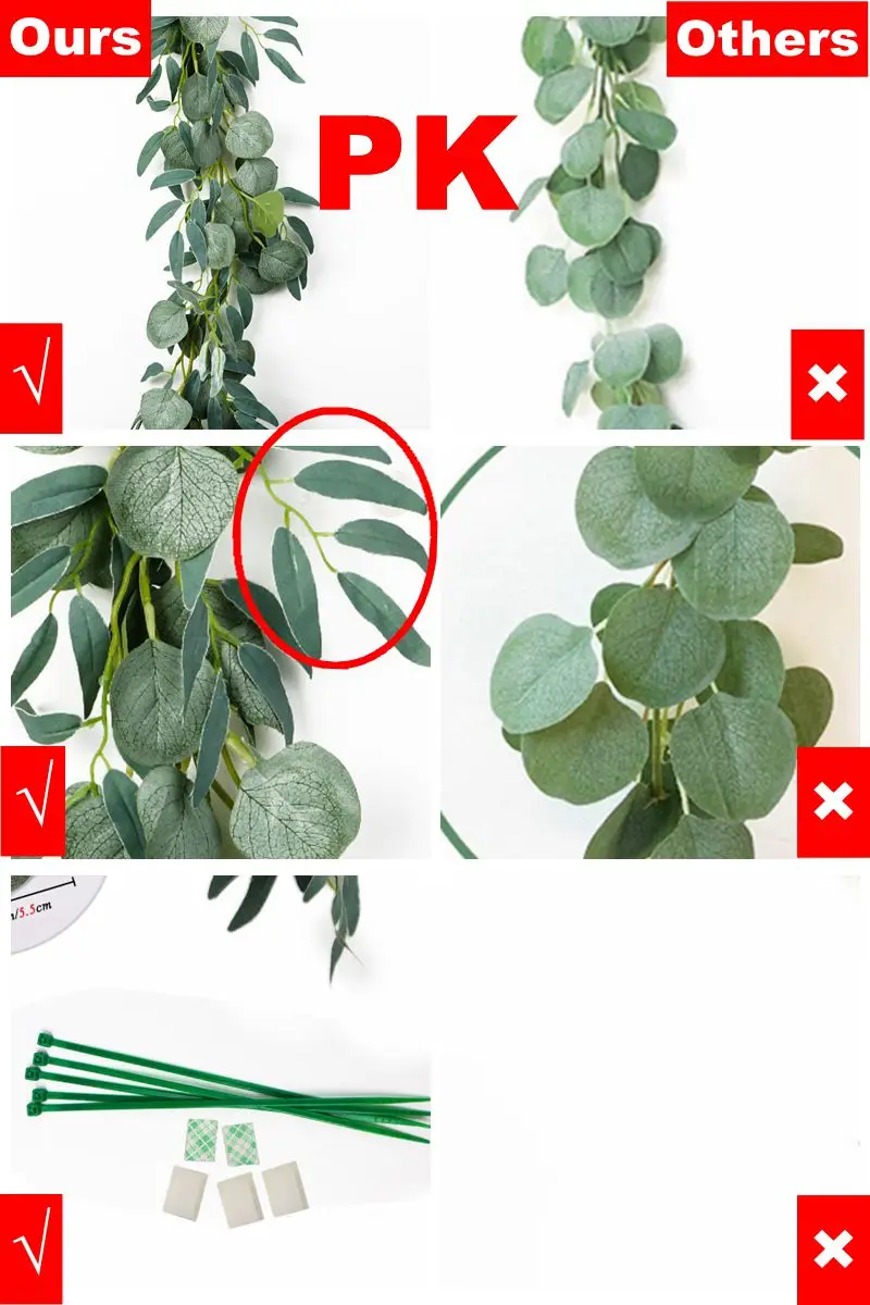 1. Наши листья более толстые и пышные2, у нас есть листья эвкалипта и ивы, у других продавцов есть только один тип листьев3. Мы отправляем 5 шт. кабельных застежек на молнии и 5 шт. прочных клеек, которые вам нужны, когда вы делаете своими руками свою гирлянду из эвкалипта, другой продавец не предоставляет