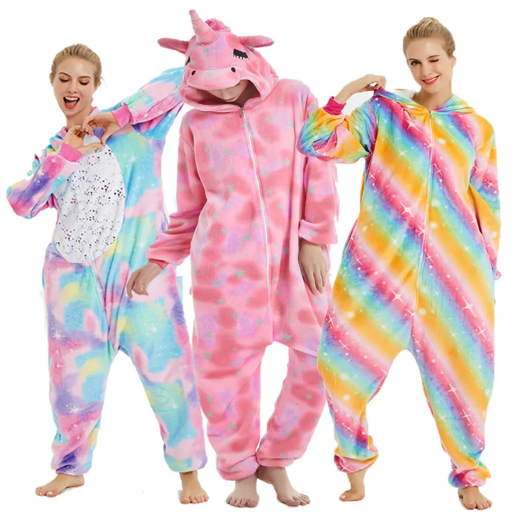 Кигуруми Единорог Пижама для взрослых животных комбинезон для женщин мужчин пара 2020 зимние пижамы костюм кошка пижамы фланелевые пижамы