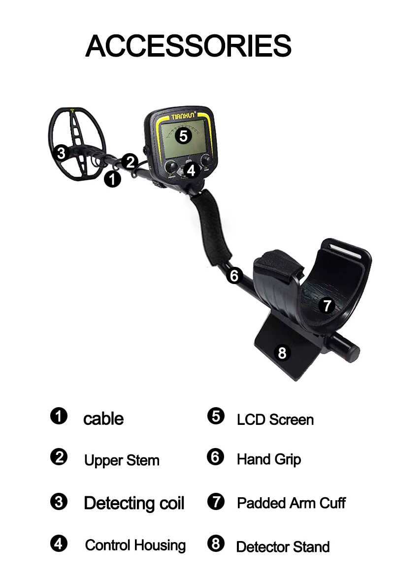 TX-850 Спецификация:Цвет: черныйДлина стрейч: 42 - 52 дюймаАккумулятор: 1X9 В (батарейки в комплект не входят)Рабочее напряжение: 9 ВОсновная Чувствительность: монета США (12-15 дюймов)Обнаружения: материал подошвы: полиуретан Толщина Макс: 1,5 метров (50x50x1,2 cm алюминиевая доска)Поисковая катушка: 11 дюймов DD, водонепроницаемая, взаимозаменяемаяFrequncy : 19 кГц, Кристальное управлениеРежимы индикации: ЖК-дисплей и звуковой индикаторХарактеристики: разъем для наушников, регулировка громкости и чувствительностиБаланс Земли колеблется от феррита до соленой воды включительноСрок службы батареи: до 15 часовРабочая температура: (от-10 до + 50) градусов ЦельсияДиапазон рабочей влажности: от 0 до 90% без конденсацииАудиоразъем для портов Примечание:Поисковая катушка является водонепроницаемой, но корпус управления не является водонепроницаемым.