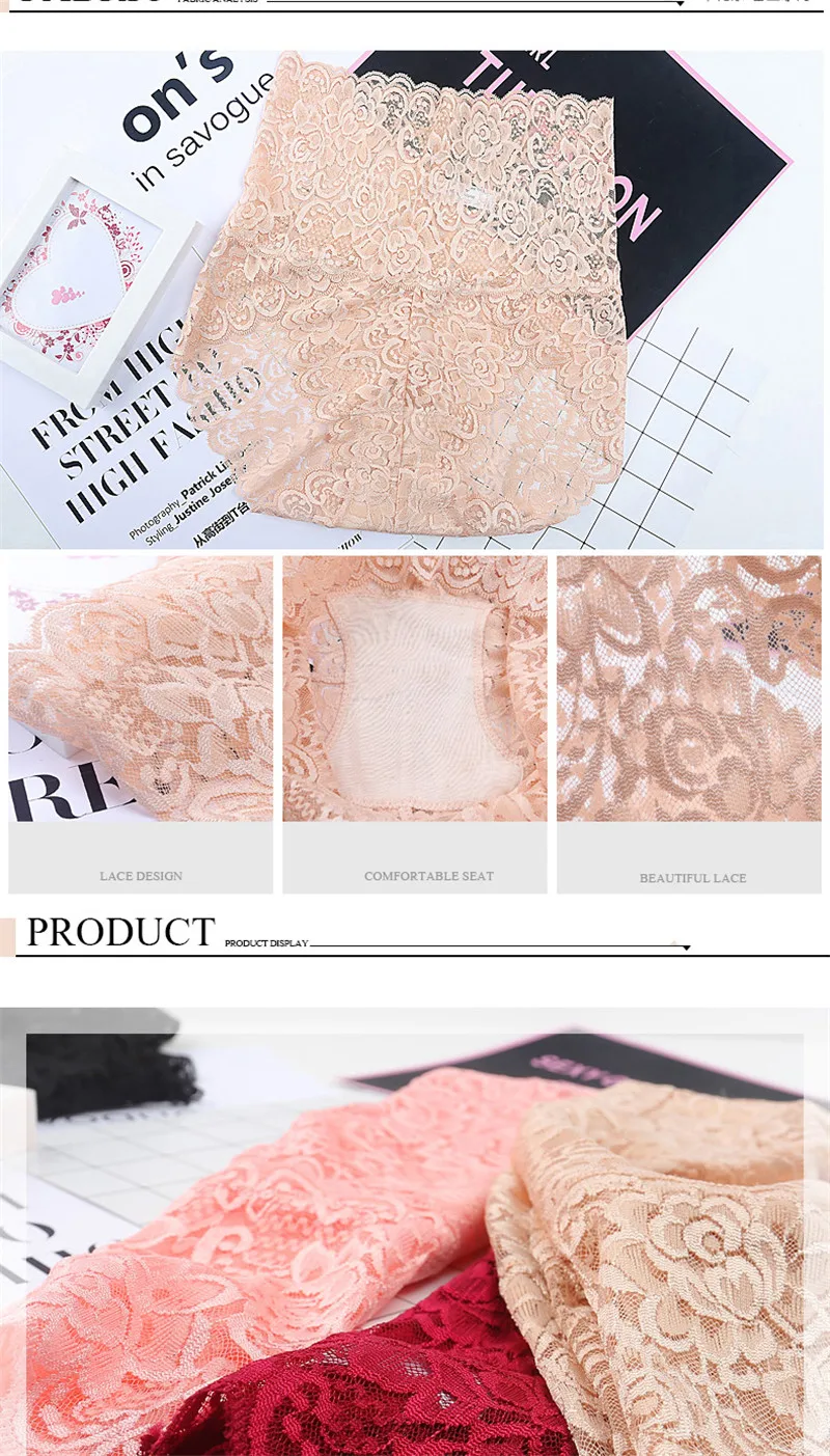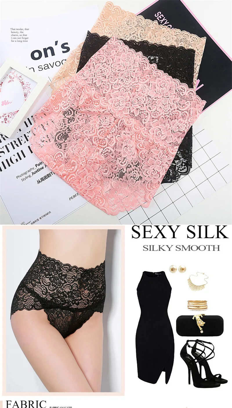 Трусики женские FINETOO, кружевные бесшовные, с высокой талией, M-3XL