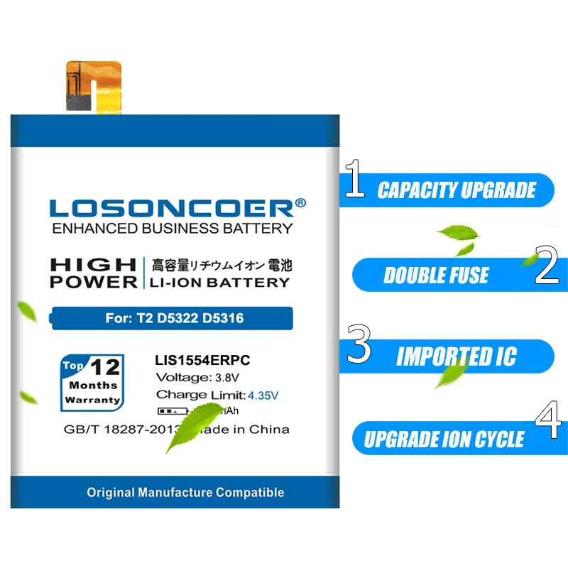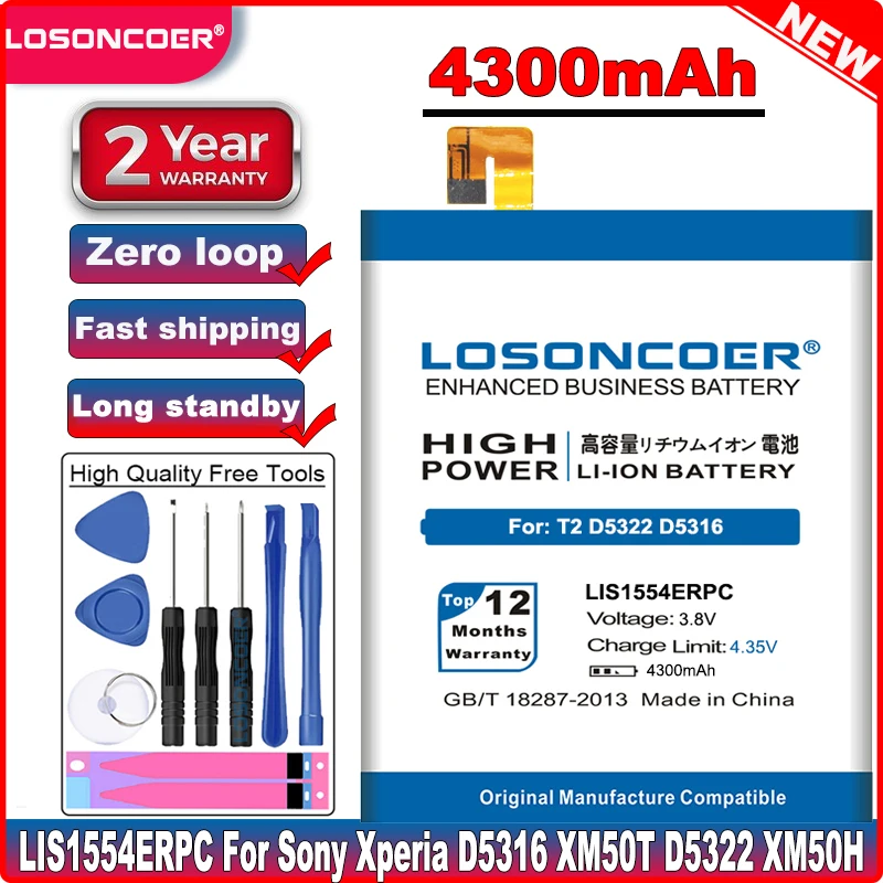 Аккумулятор LOSONCOER 4300 мАч LIS1554ERPC для Sony Xperia T2 Ultra Dual D5322 XM50T D5316 XM50H D5303