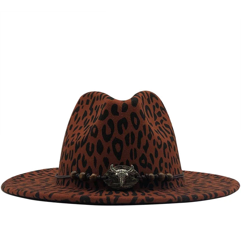 Горячая тенденция унисекс плоские поля шерсть фетр Джаз Fedora шляпы мужские женские леопардовые мужские леопардовые зерна кожаный ремешок Декор Трилби Панама Формальные шляпы 60 см