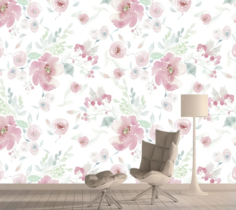 Розовые розы на заказ обои 3D Природа Акварельная настенная живопис...