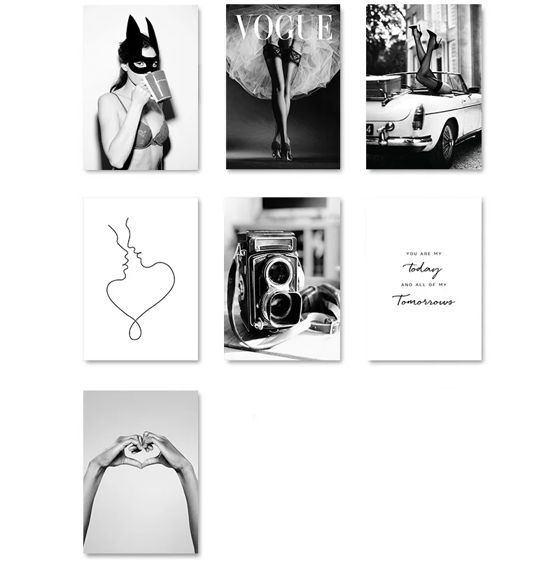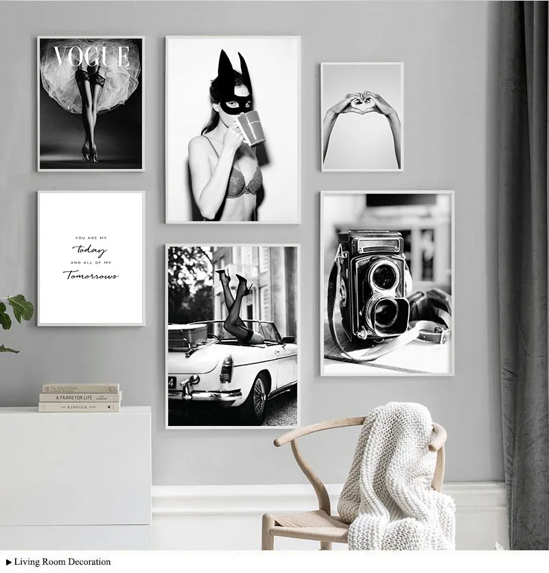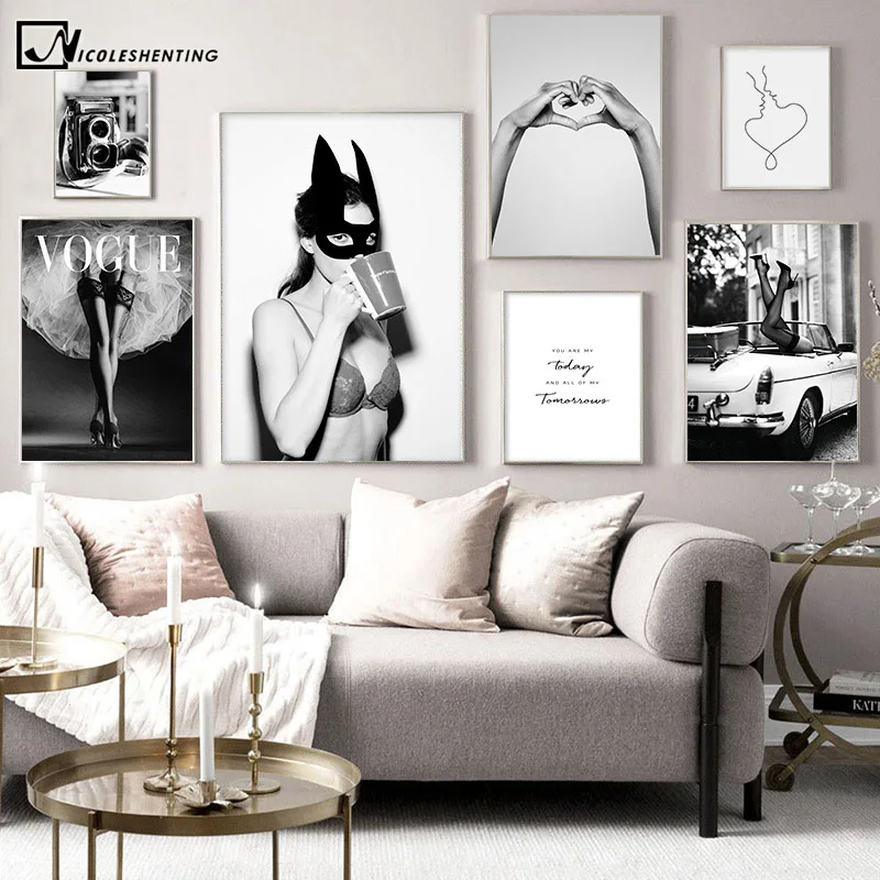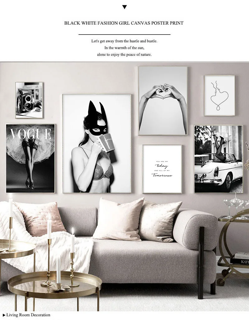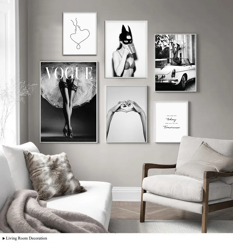 Сексуальный женский модный постер, черно-белый холст с принтом, нас...
