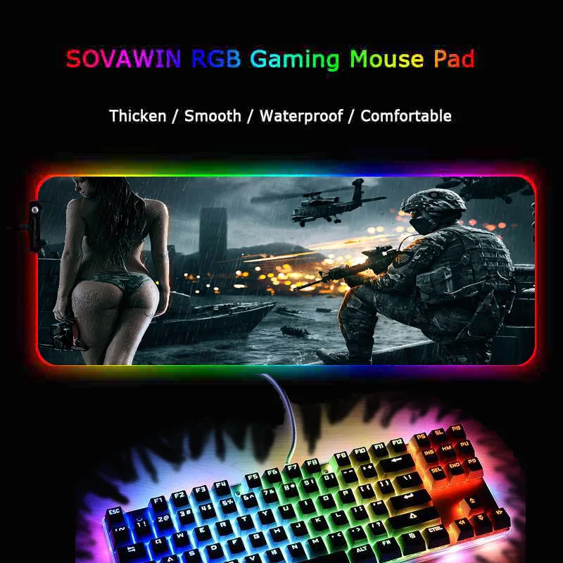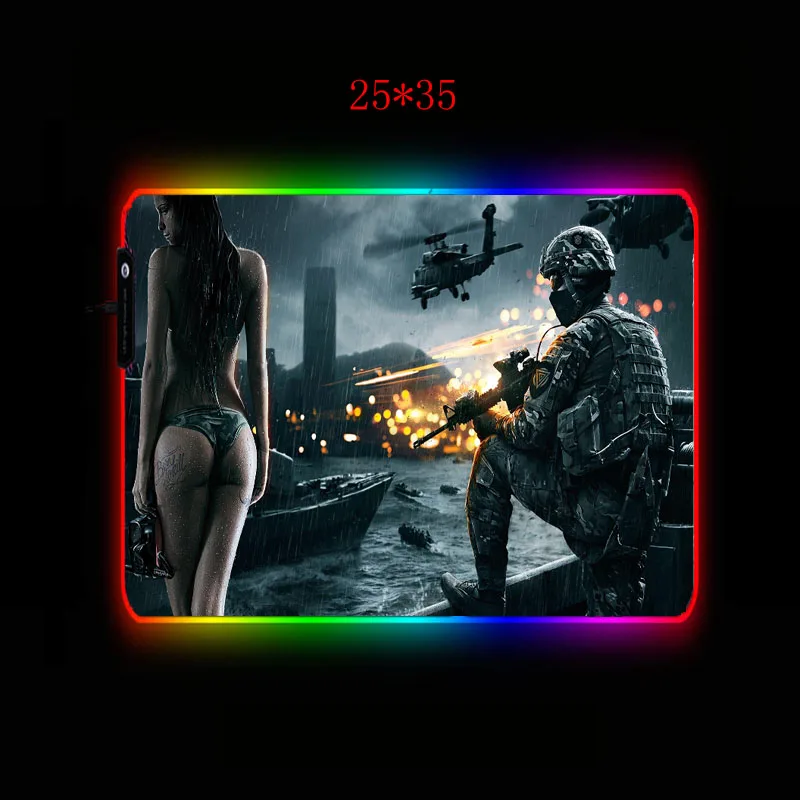 MRGBEST Battlefield Girl игровая RGB коврик для мыши геймер ПК Компьютерная коврик для мыши с подсветкой большой XXL коврик для мыши настольная клавиатура компьютерные мыши с подсветкой коврик