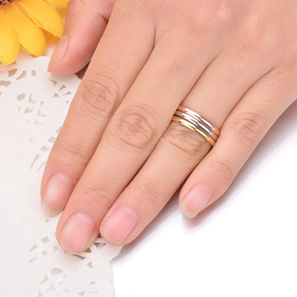 1. Наименование:3 цвета, набор серебряных колец, сделай сам, розовое золото, серебро, цвет 2 мм, модные кольца для женщин, свадебные ювелирные изделия из нержавеющей стали, одноцветные полированные