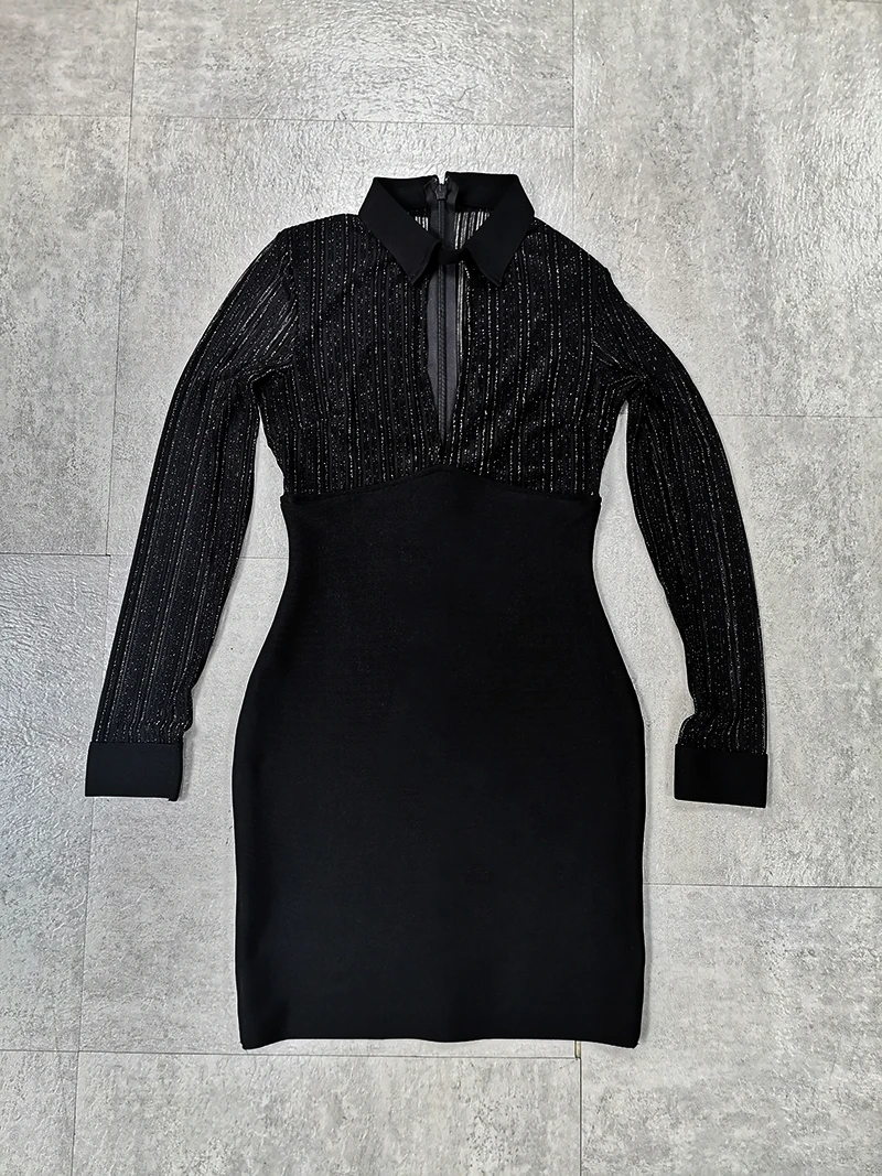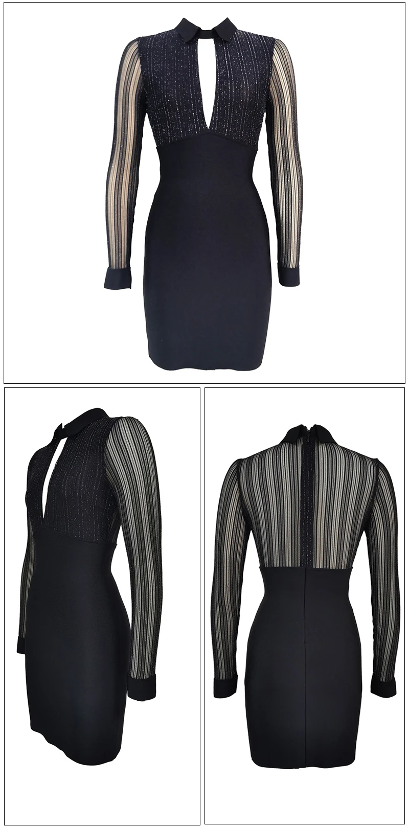 Черное сексуальное Клубное платье с v-образным вырезом и длинным рукавом, вечерние платья до колен, модные женские платья высокого качества, весна 2020