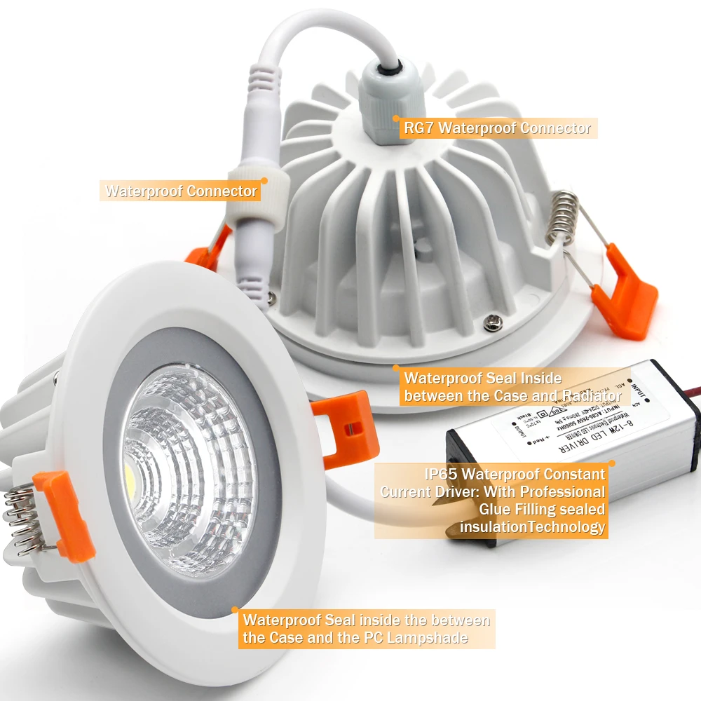 Водонепроницаемый светодиодный потолочный светильник 15 Вт 12 Вт 7 Вт 5 Вт IP65 Водонепроницаемый COB Точечный светильник круглый встраиваемый светильник для внутреннего и наружного освещения