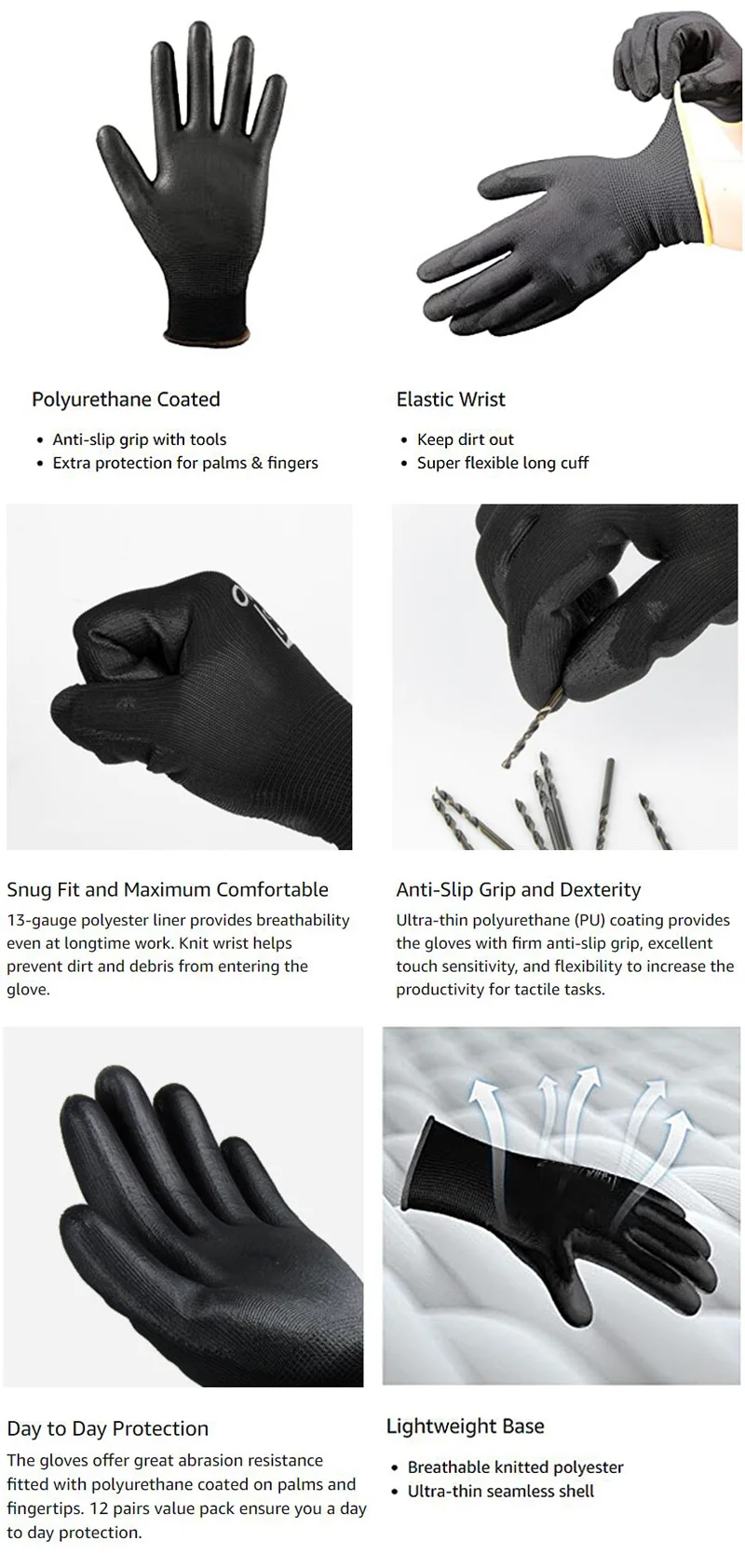 Профессиональные рабочие перчатки с пальмовым покрытием, защитные перчатки из искусственной кожи, черные нейлоновые хлопковые бытовые перчатки, рабочая работа, 12 пар нм, защитный бренд