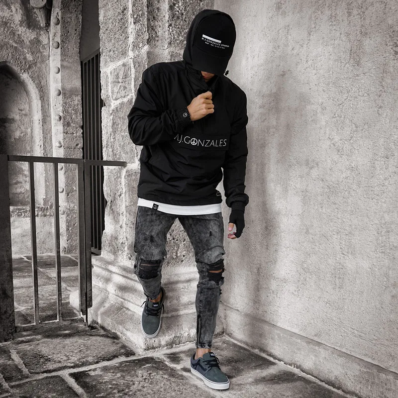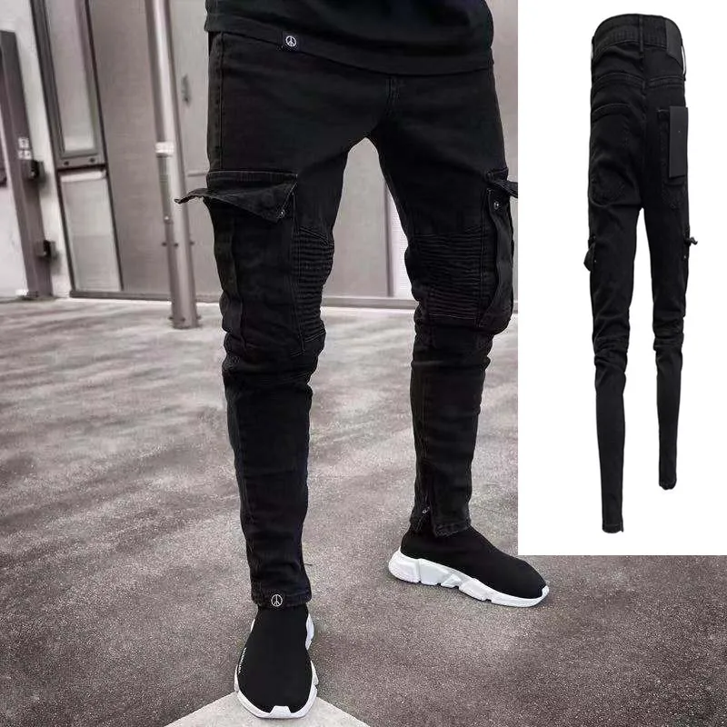 Мужские модные тонкие облегающие джинсы для мужчин, длинные брюки-карандаш в стиле хип-хоп, рваные джинсы, узкие джинсы с несколькими карманами для бега