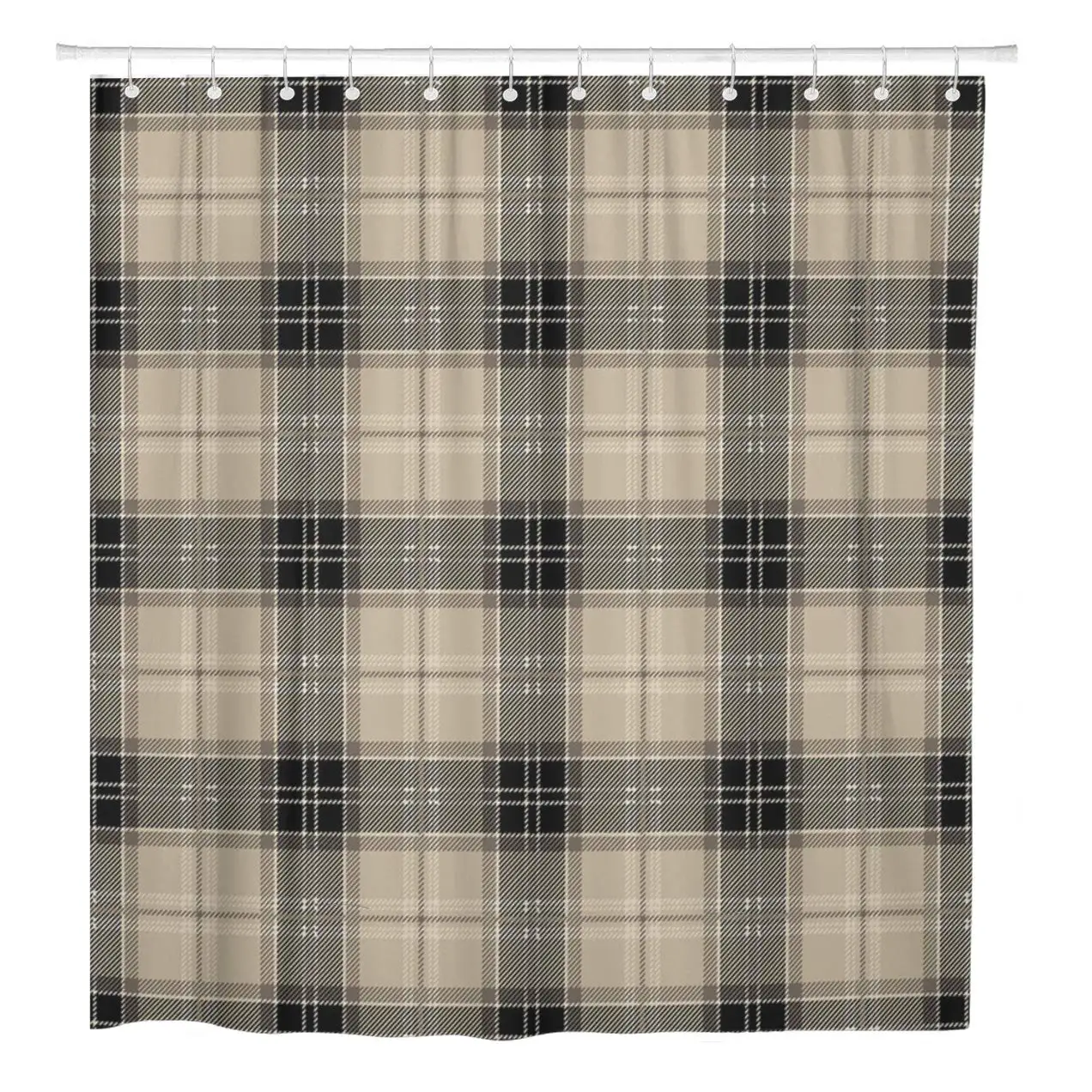 Бежевый тканый шотландский плед абстрактный Черный британский клетчатый клановый душевой занавес водонепроницаемый 72x78 дюймов набор с крючками