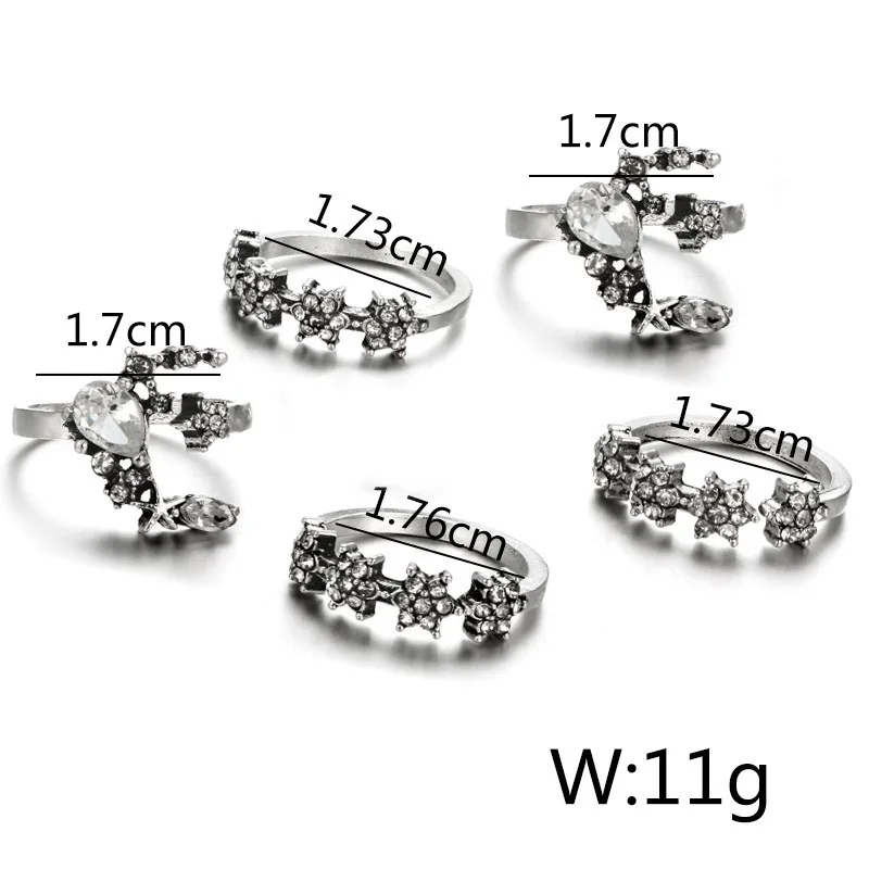 DIEZI 11 шт.компл. цветок крест костяшки капли воды, кольца, набор ...