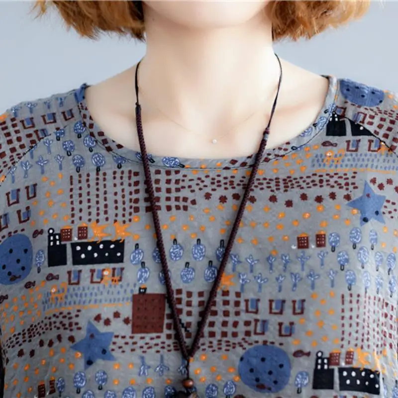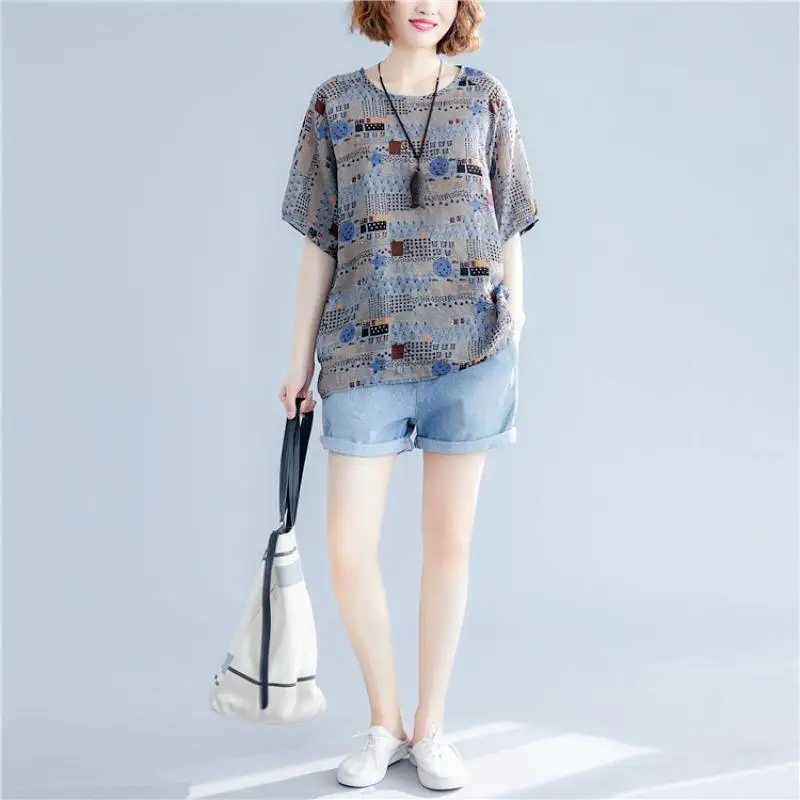 Хлопковая футболка большого размера, льняная футболка с графическим принтом, женские топы, летняя футболка, Женские рубашки в Корейском стиле, женская футболка, Топ