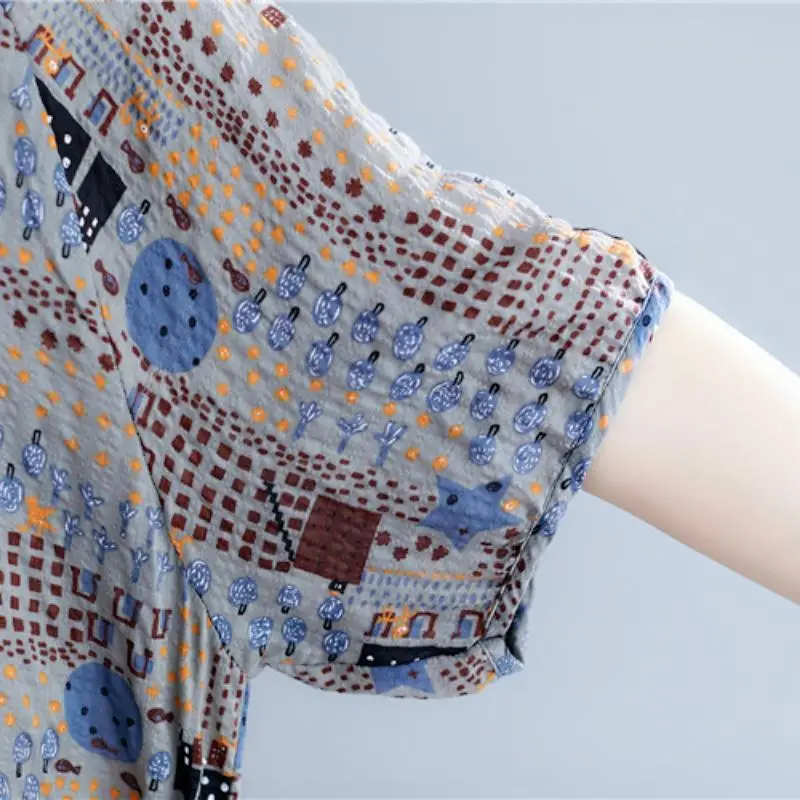 Абсолютно "тупой покрой". Моя бабушка для себя кроит лучше. Я купилась на цвет - голубой, под летние джинсы. В реалии фон - сероватый беж "грязная мешковина". Ткань - дешёвый штапель, никакого заявленного льна в рубчик НЕТ! Размер 4ХL - на грудь 110-115 см. Рукав на фото - к низу зауженный, как-бы с защипами - враньё! Тупой широченный рукавище. Производителю - позор!