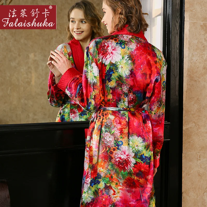 Утолщенный халат из 100% натурального шелка, женские ночные рубашки, благородный сексуальный халат, женский элегантный халат из чистого шелка тутового шелкопряда S5657
