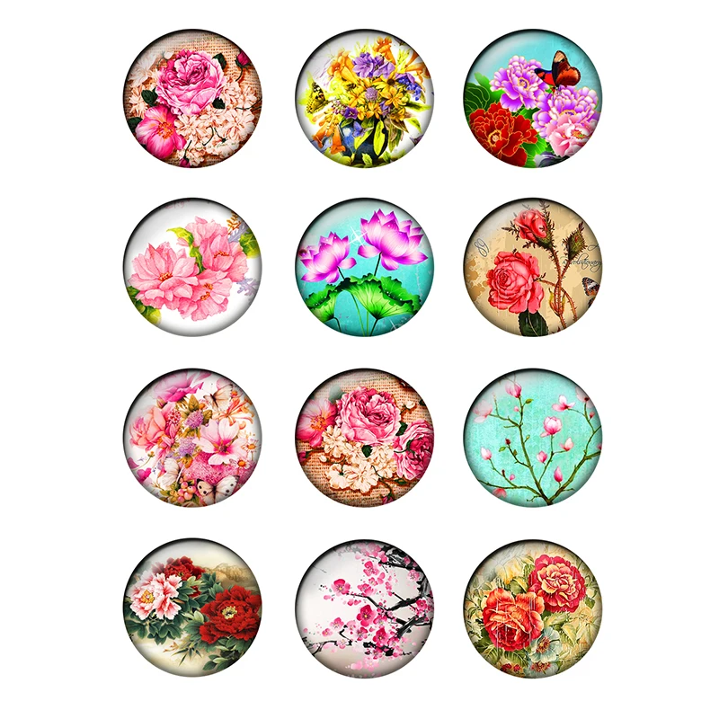 24 шт.лот, винтажный цветочный узор, стеклянные кабошоны 12 мм, стеклянный купол для DIY браслета, ювелирных изделий и компонентов, T146