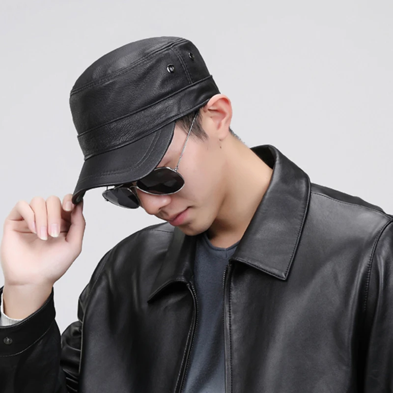 Бейсболка из натуральной кожи для мужчин и женщин, Кепка из 100% овечьей шкуры в стиле милитари, плоская, весна-осень