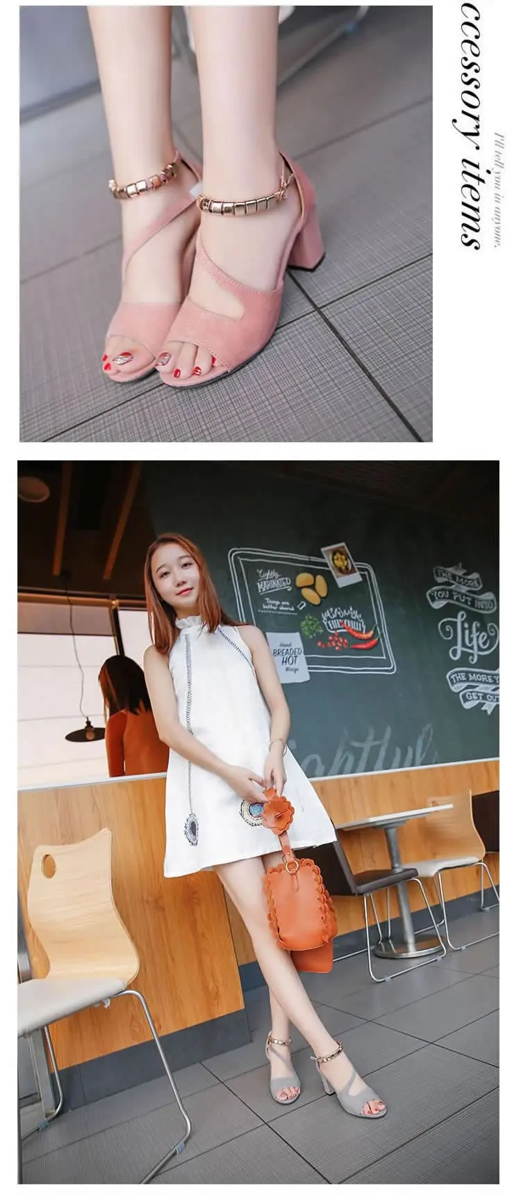 Женские открытые римские сандалии с одной пряжкой, грубые повседневные босоножки на высоком каблуке, шнурок для обуви, с бусинами