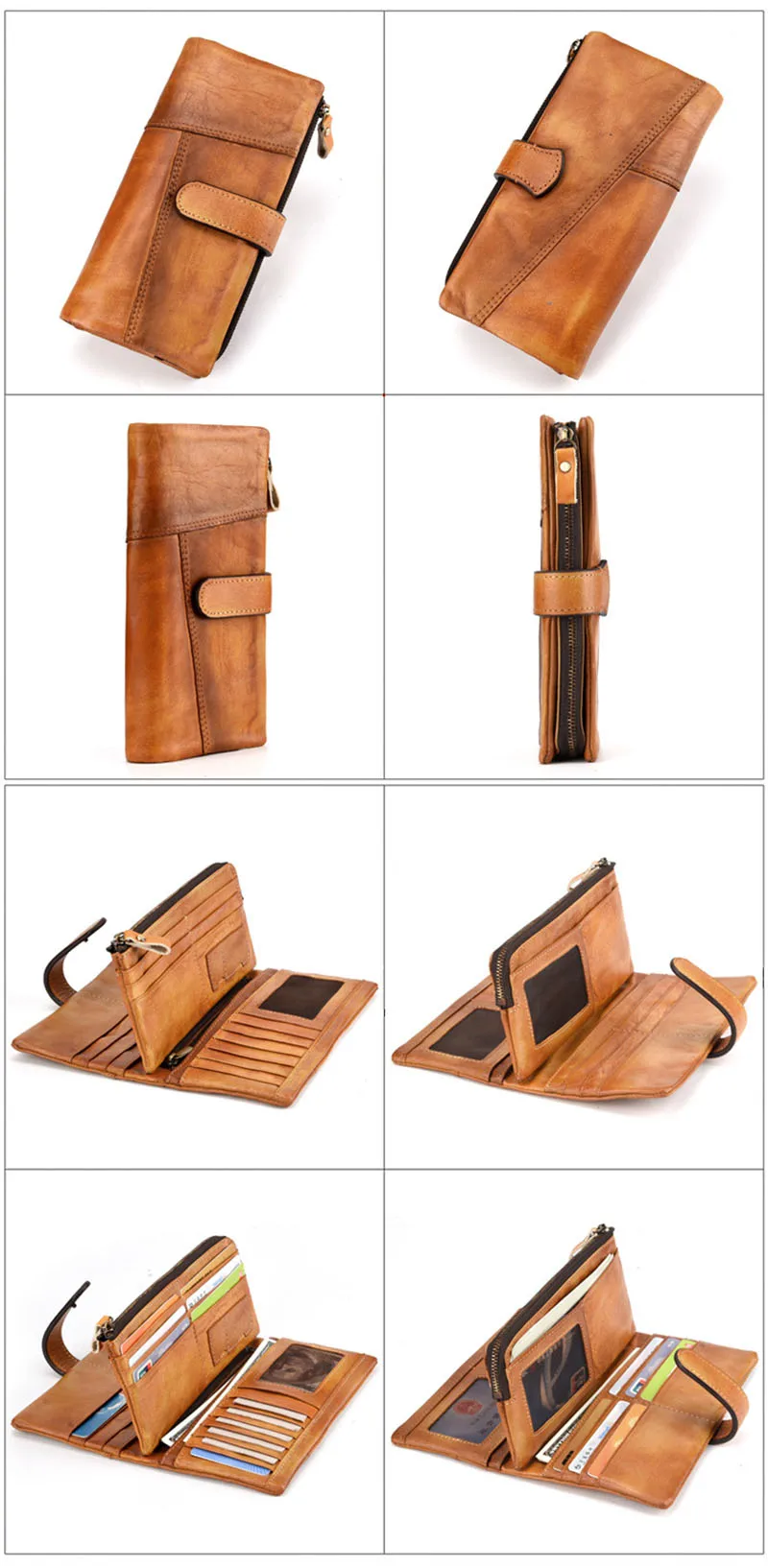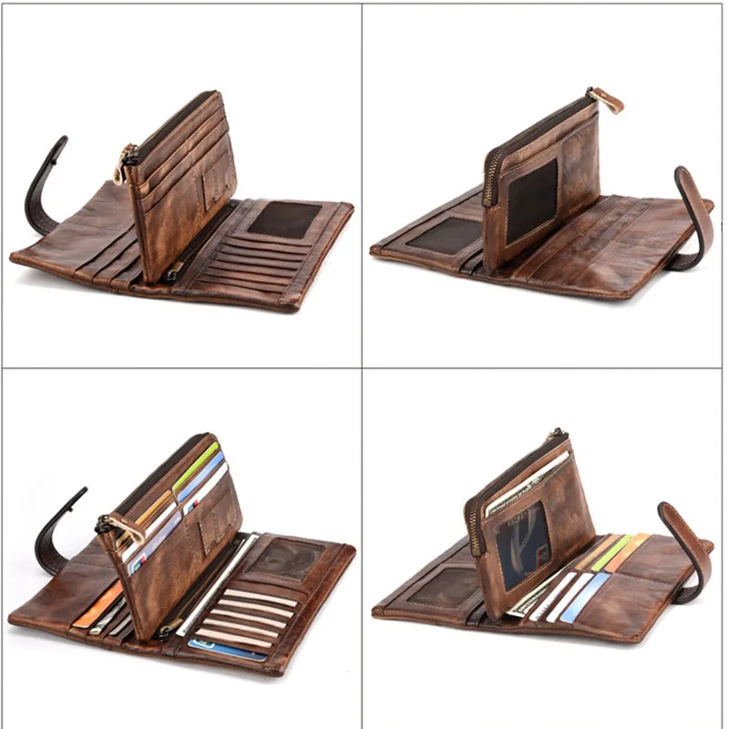 Кошелек мужскойженский из натуральной кожи, на молнии, с RFID-блокировкой