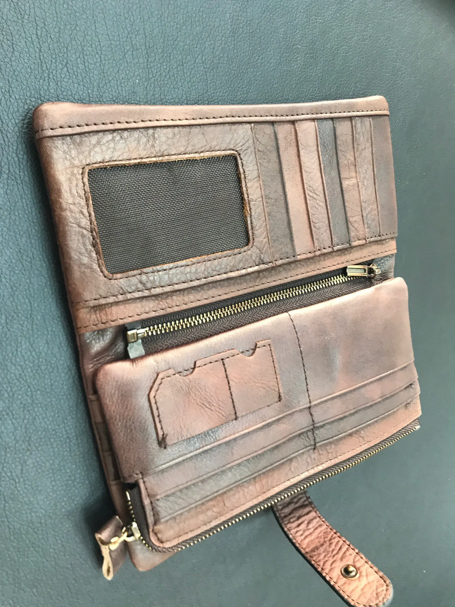 Кошелёк ..............вообще бомба! Долго выбирал , решил взять этот! Великолепное качество! Очень удобный! Конечно не складной для носки в заднем кармане , а солидный для носки в хорошей кожаной сумке!