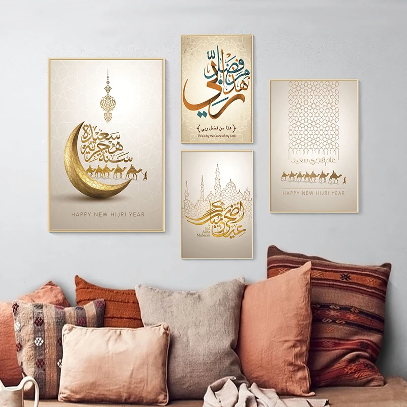 Картины, постеры и принты для домашнего декора, настенная живопись, Картина на холсте, ИД Мубарак для декора Аллах мусульманство ислам