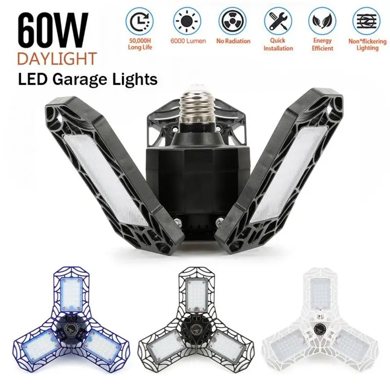 Светодиодный светильник для гаража, 360 градусов, 40 Вт, 60 Вт, тройной светильник для гаража, светящийся трехлистный деформируемый светильник для помещений, освещение для гаража, 6000 люмен