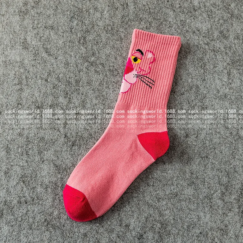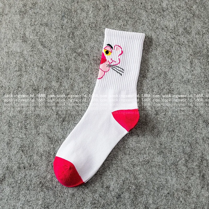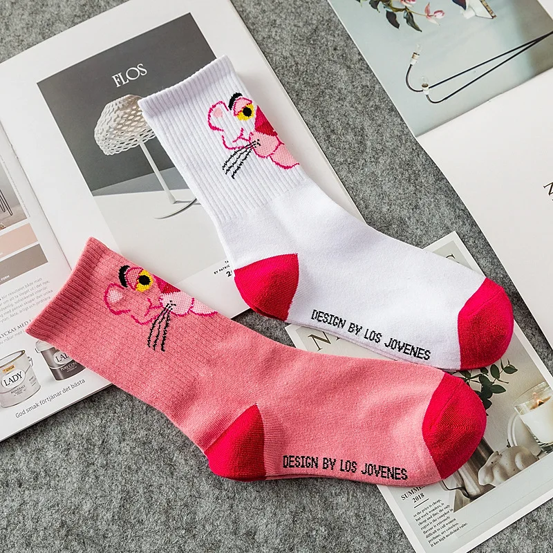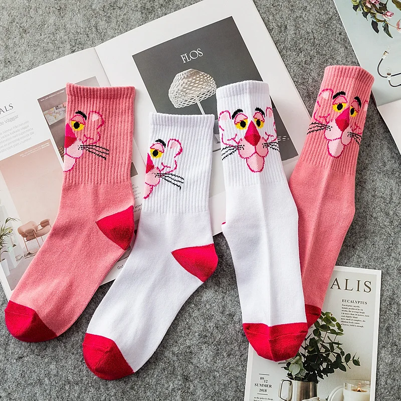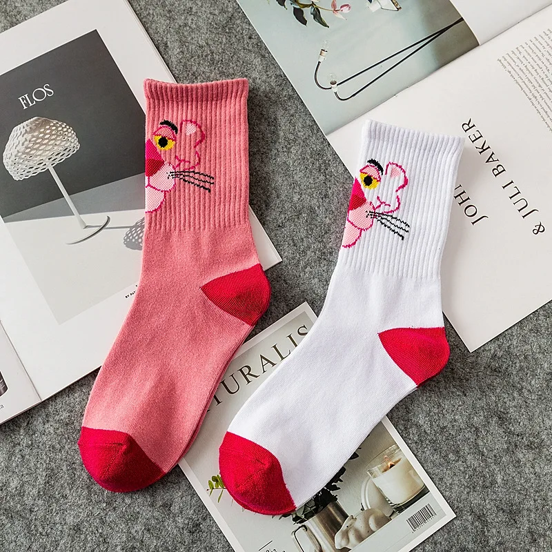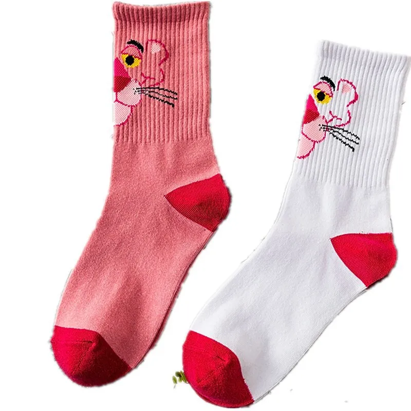 Женские носки с принтом в стиле хип-хоп 2020, милые с мультяшными животными, розовой пантерой, надписями, черные, белые, искусственные для женщин