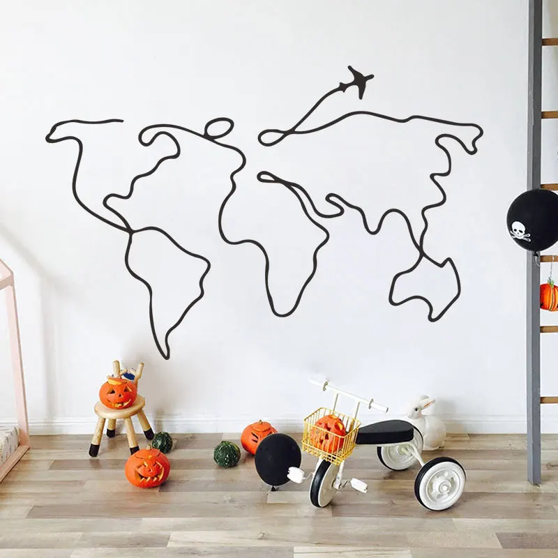 Карта мира Контурные наклейки на стену с узорами для украшения офисного дома Спальня Кабинет фотообои для комнаты искусство наклейки для дома