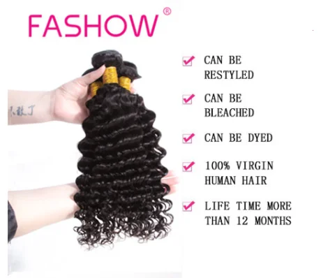 Fashow 30 32 34 36 дюймов Бразильские глубокие волнистые волосы в пучках, глубокие кудрявые человеческие волосы, 100% натуральные человеческие волосы в пучках, волосы Remy