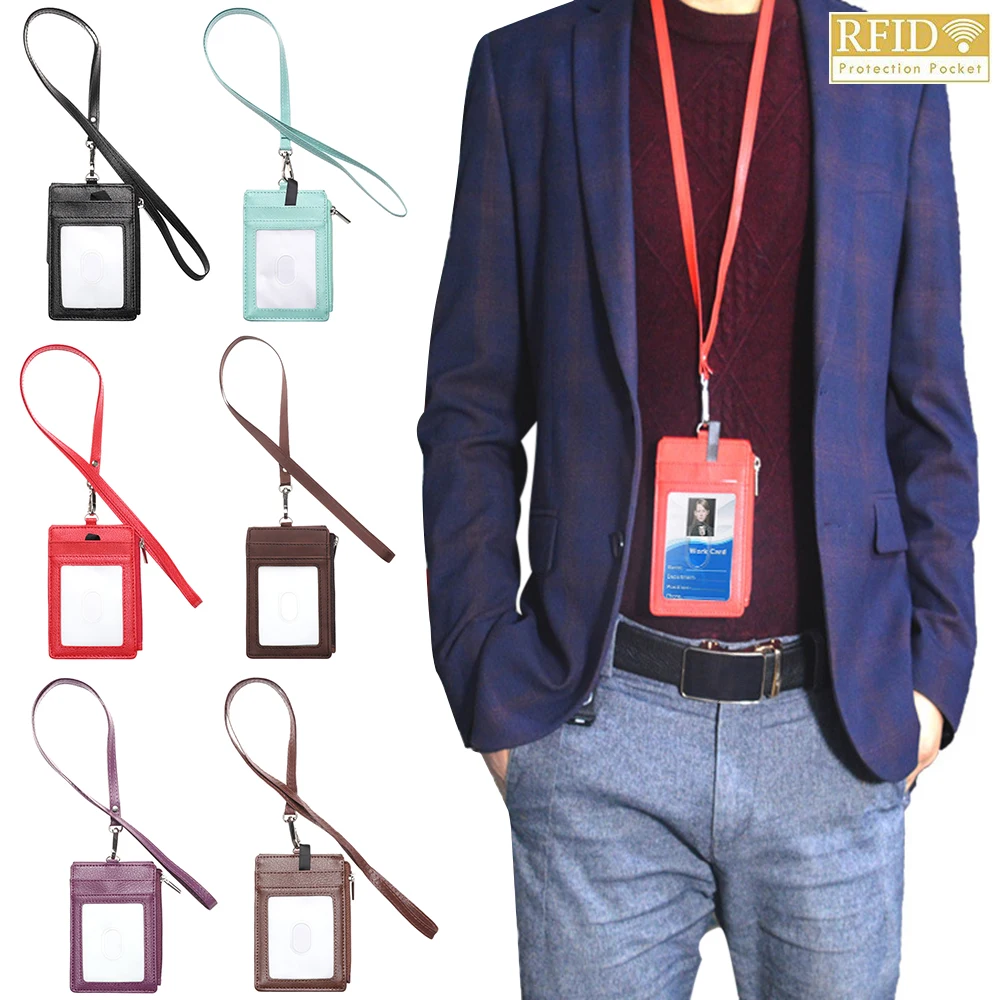 Бейдж с защитой RFID для мужчин и женщин, держатель для карт для взрослых и детей, чехол со шнурком для пластиковых карт, имя и визиток, 1 шт.