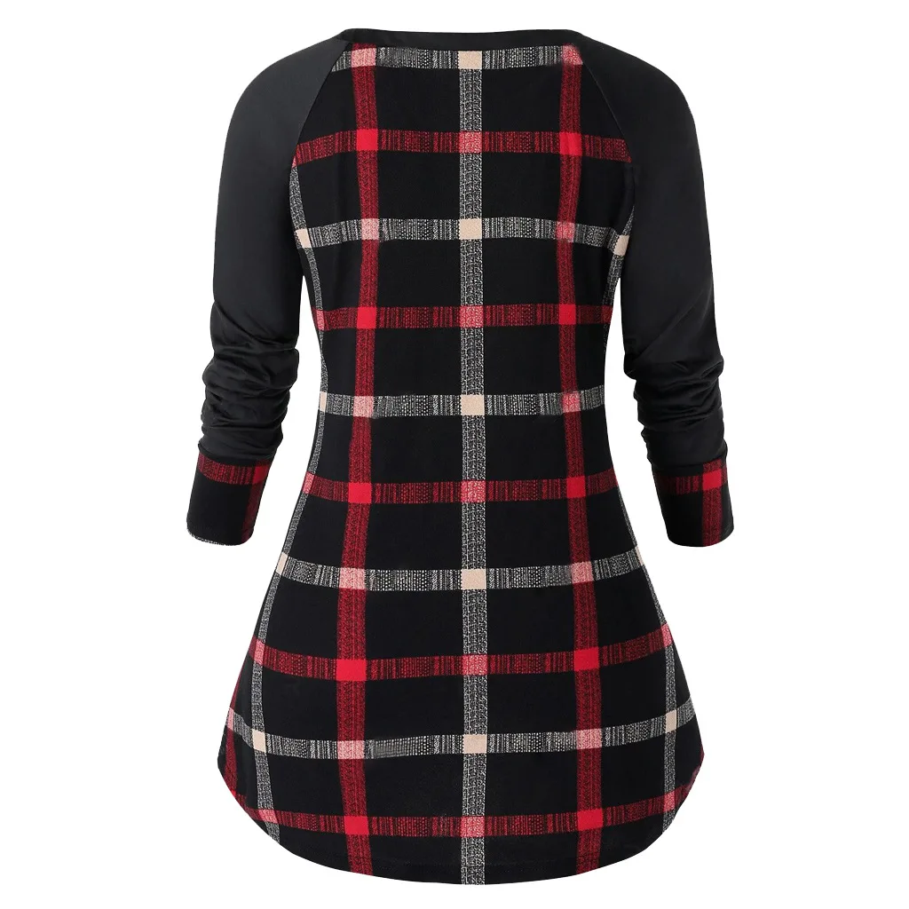 Блузка-туника женская зимняя, клетчатая, с длинным рукавом и шнуров...