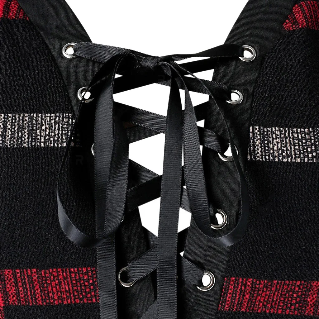 Женская клетчатая туника на шнуровке, с V-образным вырезом и длинны...