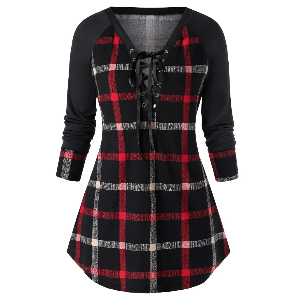 Клетчатая туника на шнуровке, блузка, повседневные зимние женские т...