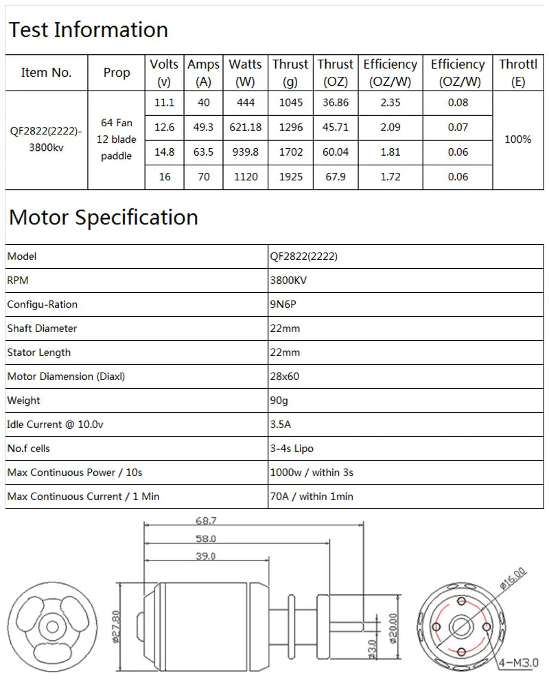 Описание:Название бренда: QX-MOTORНаименование товара: QF2822-3800KVВес: 168 гИспользование: подходит для RC самолетаОсобенности:Воздуховод с моторомУсовершенствованный поликарбонатный материал, который является ударопрочным сопротивлением, а также высокотемпературным сопротивлением, который может гарантировать жесткость и твердость, значительно снижает коэффициент повреждения.Комбинация сделана из алюминия, который делает его более стабильным.Посылка:1*64 мм EDF набор 2822 3800KV мотор с 12 лопастями воздуховод