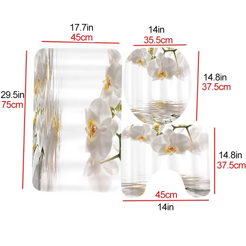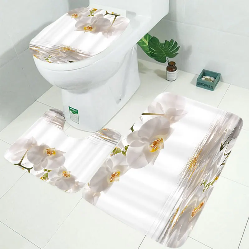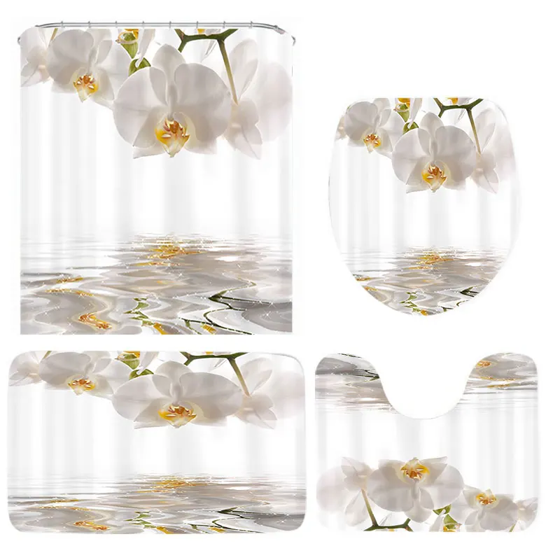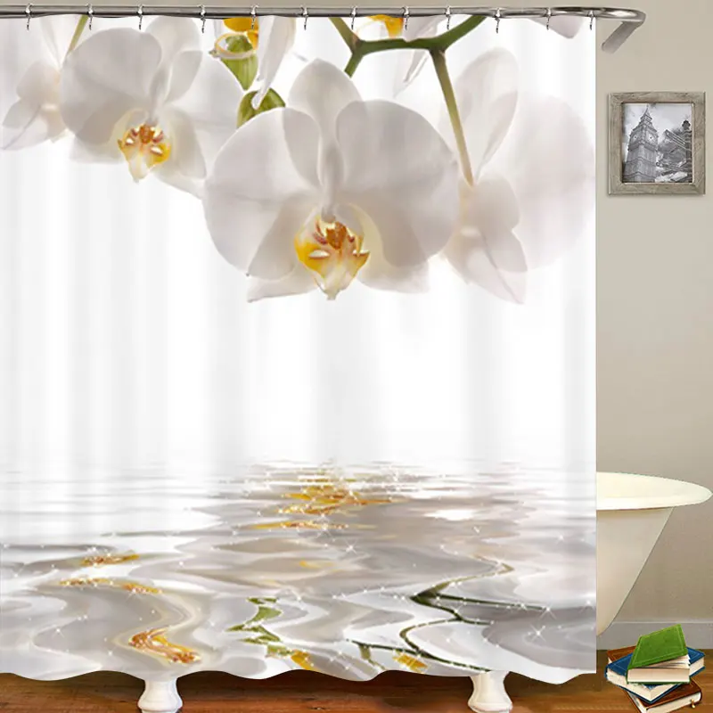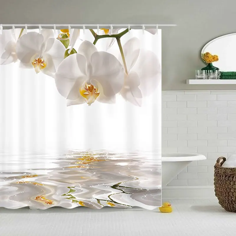 Белая занавеска для душа с принтом орхидеи, 3 шт., набор ковриков для ванной комнаты, водонепроницаемая полиэфирная ткань, занавеска для ванной с 12 крючками 180*180 см