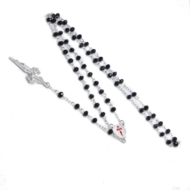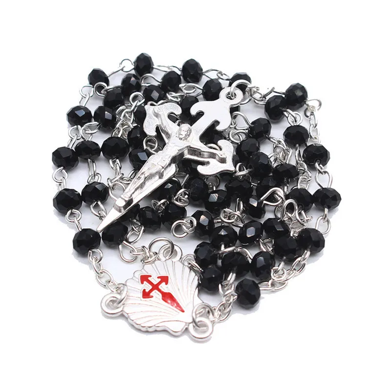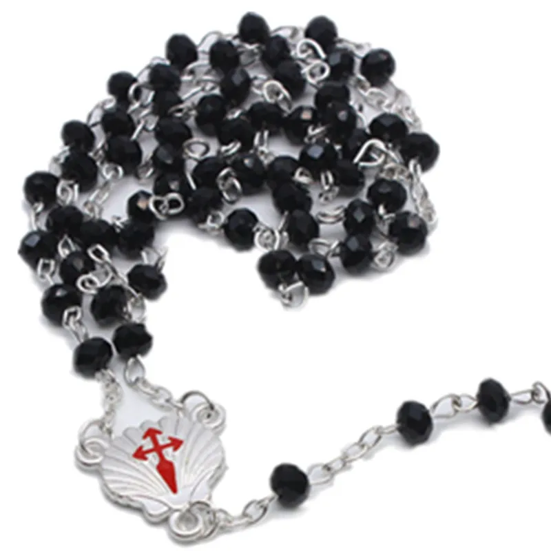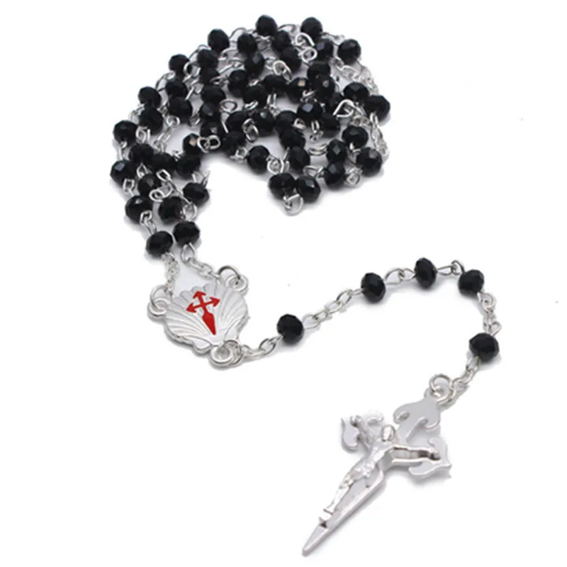Ожерелье с католическими четками, круглые стеклянные бусины, ожерелье с изображением девы Марии и Иисуса, ожерелье с подвеской-крестом для женщин, религиозные украшения