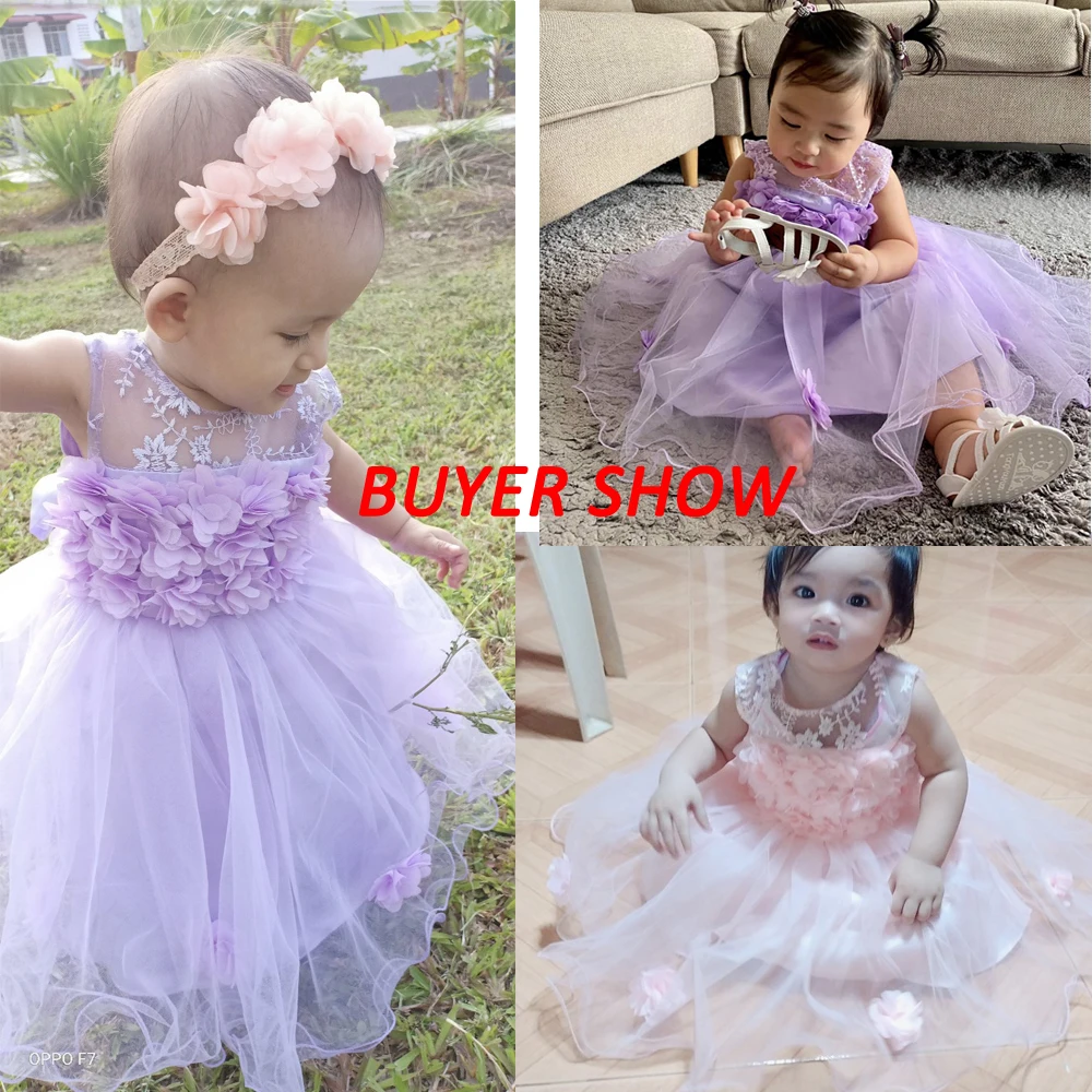 2022 Летнее белое первое платье для маленьких девочек, кружевное платье принцессы для крещения на 2-1 день рождения, праздничное платье с цветами, свадебная одежда для малышей