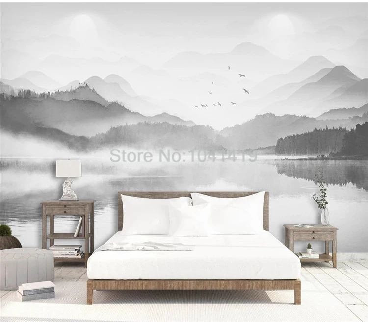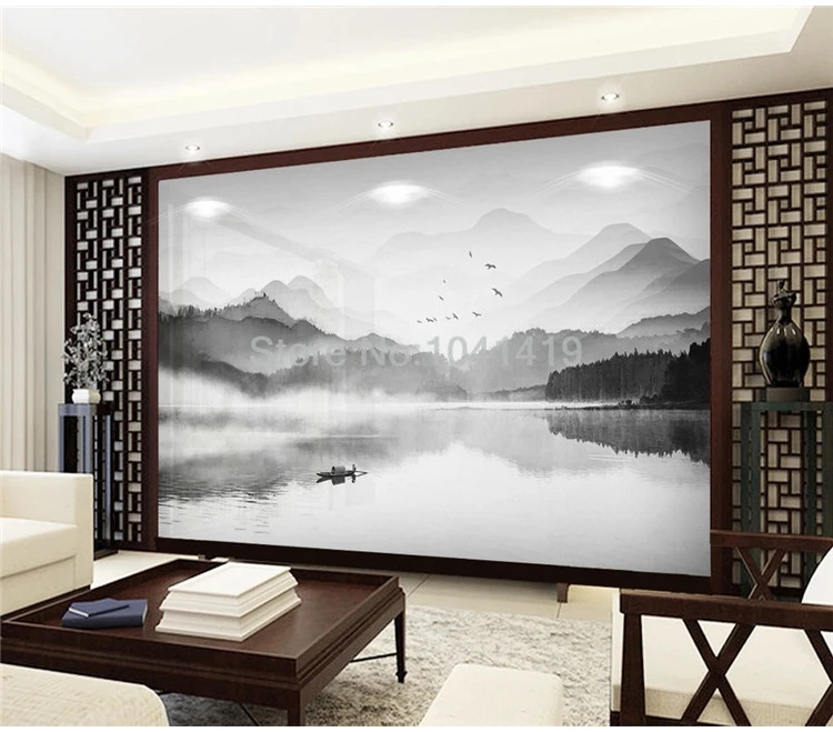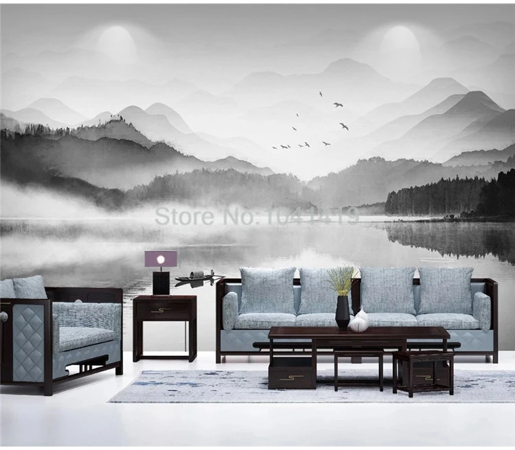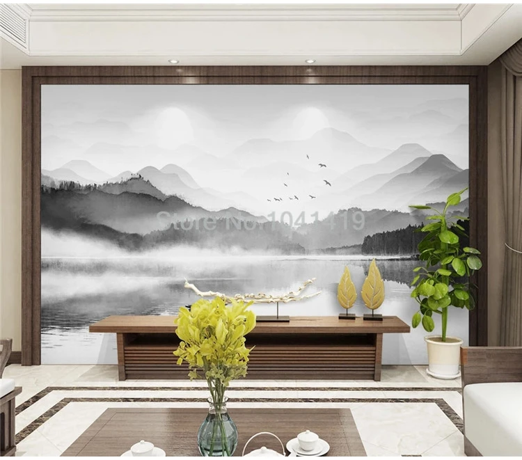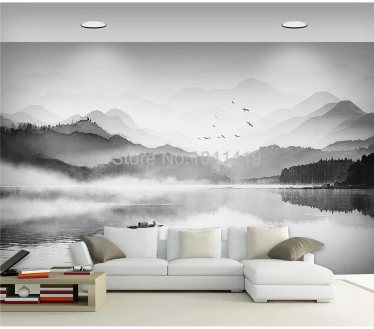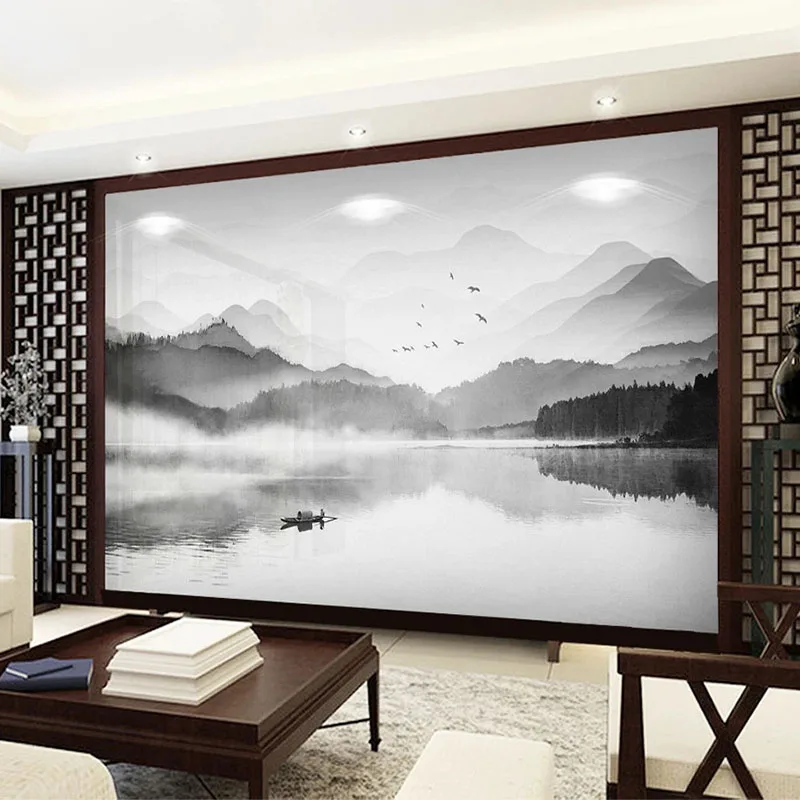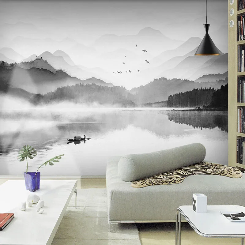 Настенные обои на заказ в китайском стиле, черно-белая художественная фреска с изображением пейзажа, гостиной, кабинета, домашнего декора, настенные 3D обои