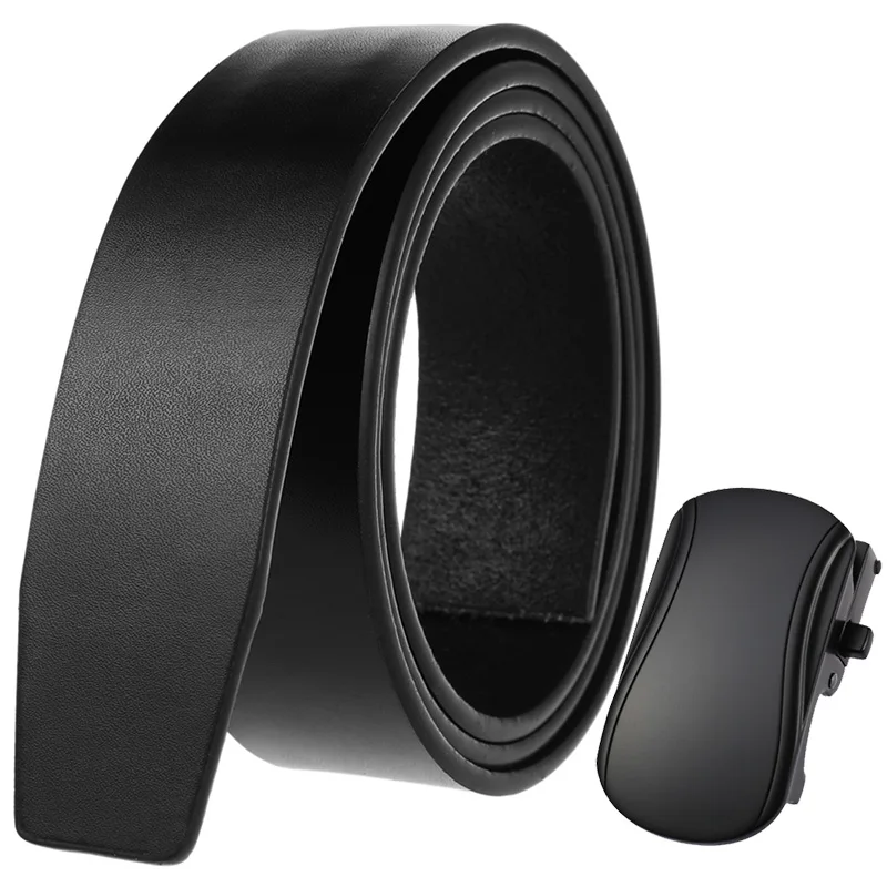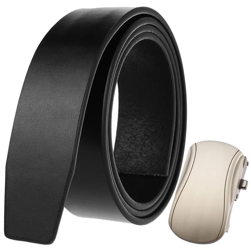 Черный мужской ремень из натуральной кожи без пряжки с металлической пряжкой и автоматической пряжкой деловой ремень стильный дизайн гладкие линии