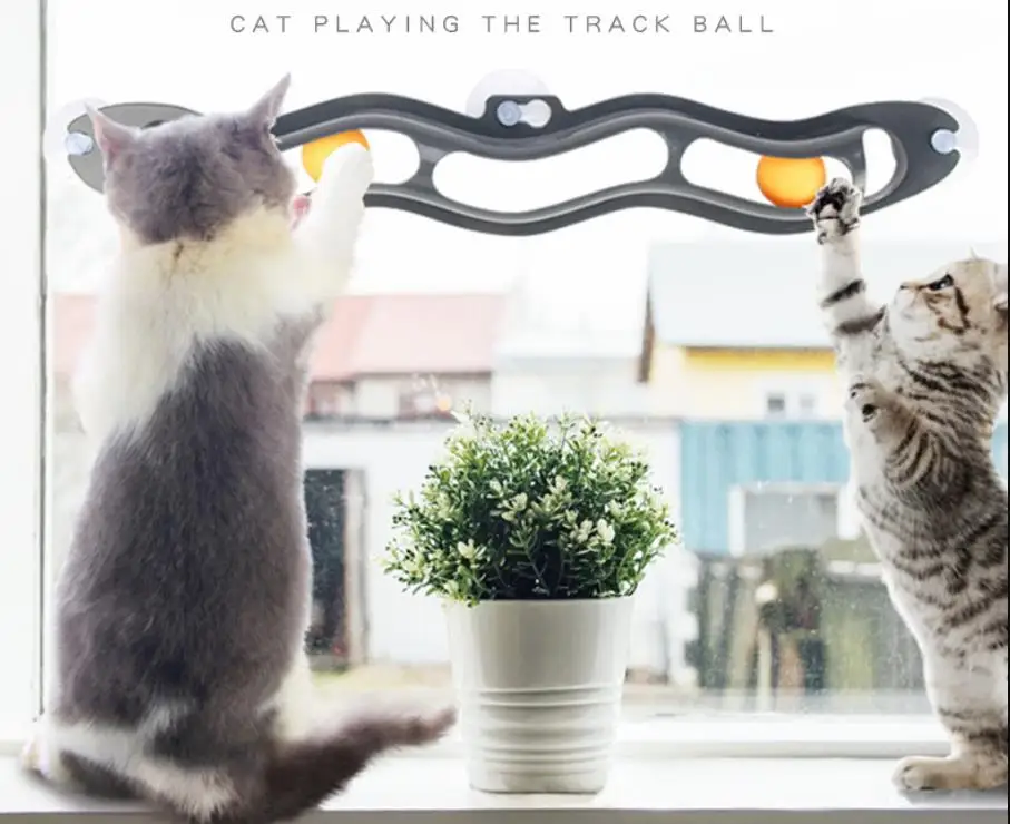 Игрушки для домашних животных, игрушки для кошек, интерактивный трек, игрушка для кошек, практичная Присоска на окно, трекбол, аксессуары для домашних животных, мяч для кошек, теннисная присоска, игрушка