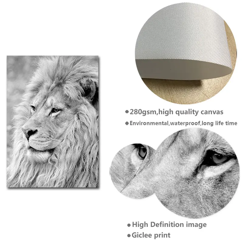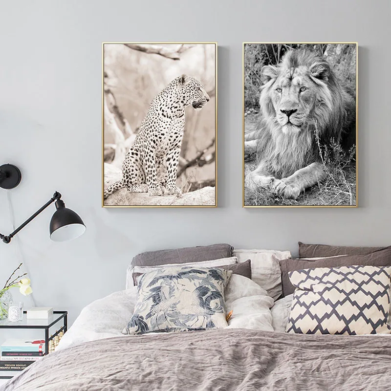Плакаты с изображением диких животных Лев леопарда, черные и белые ...