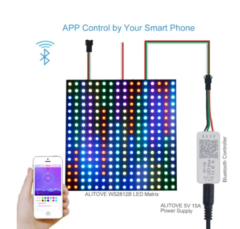 Контроллер пиксельсветильник Ки SP110E, совместимый с Bluetooth, WS2811, WS2812, диммер SK6812, RGB, RGBW, WS2801, светодиодная лента для IOS, Android