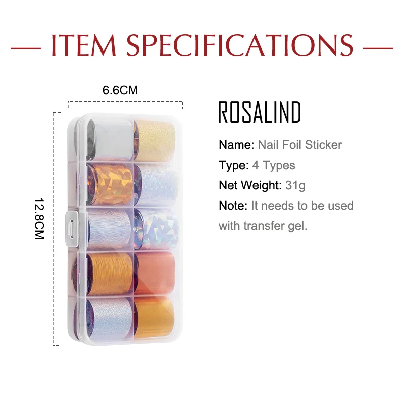 Слайдер для фольги ROSALIND, Переводные картинки для ногтей, маникюрный набор, полуперманентные наклейки для ногтей, основа под Гель-лак